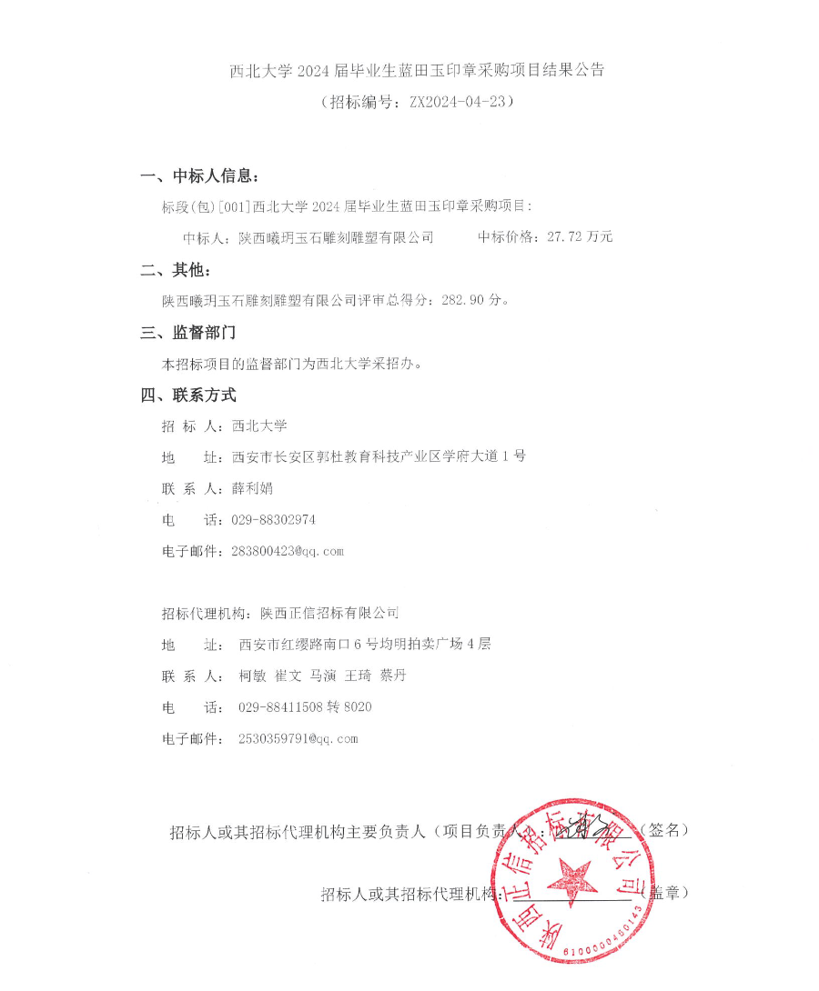 伟德国际1949始于英国2024届毕业生蓝田玉印章采购项目结果公告