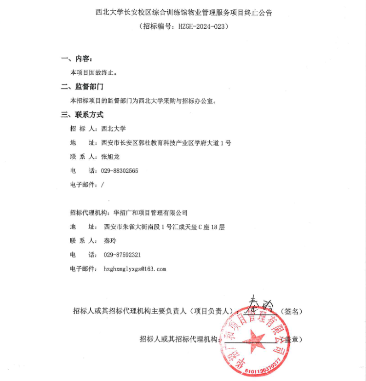 伟德国际1949始于英国长安校区综合训练馆物业管理服务项目终止公告