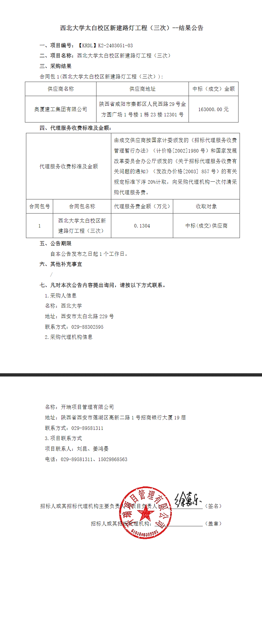 伟德国际1949始于英国太白校区新建路灯工程(三次)结果公告