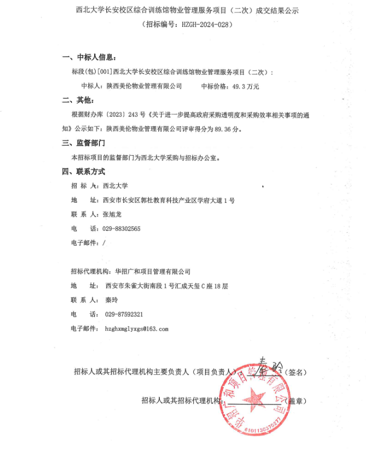 伟德国际1949始于英国长安校区综合训练馆物业管理服务项目(二次)成交结果公示
