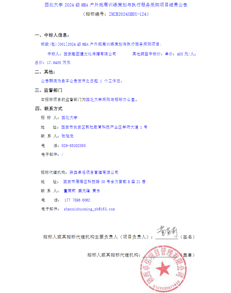 伟德国际1949始于英国2024级MBA户外拓展训练策划与执行服务采购项目结果公告