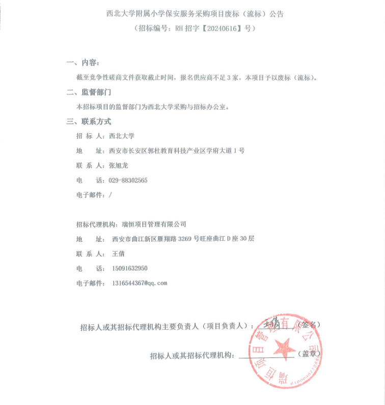 伟德国际1949始于英国附属小学保安服务采购项目废标(流标)公告