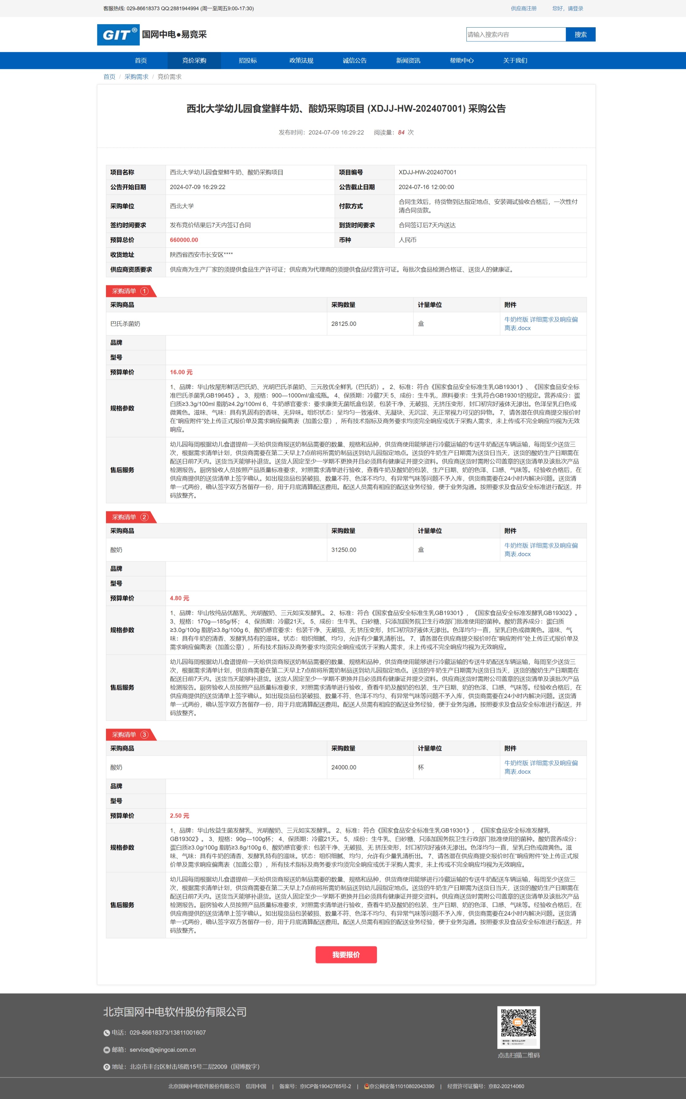 伟德国际1949始于英国幼儿园食堂鲜牛奶、酸奶采购项目 (XDJJ-HW-202407001) 竞价采购公告 作者: 编辑:采购与招标办公室 时间:2024-07-15 原公告链接:https://www.ejingcai.com.cn/site/bidding/detail/11568