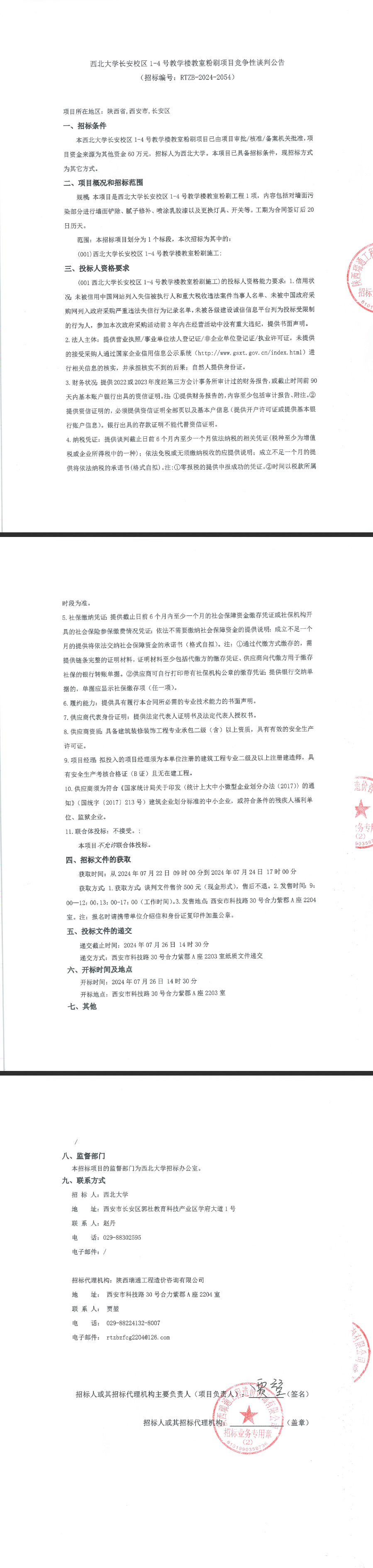 伟德国际1949始于英国长安校区1-4号教学楼教室粉刷项目竞争性谈判公告