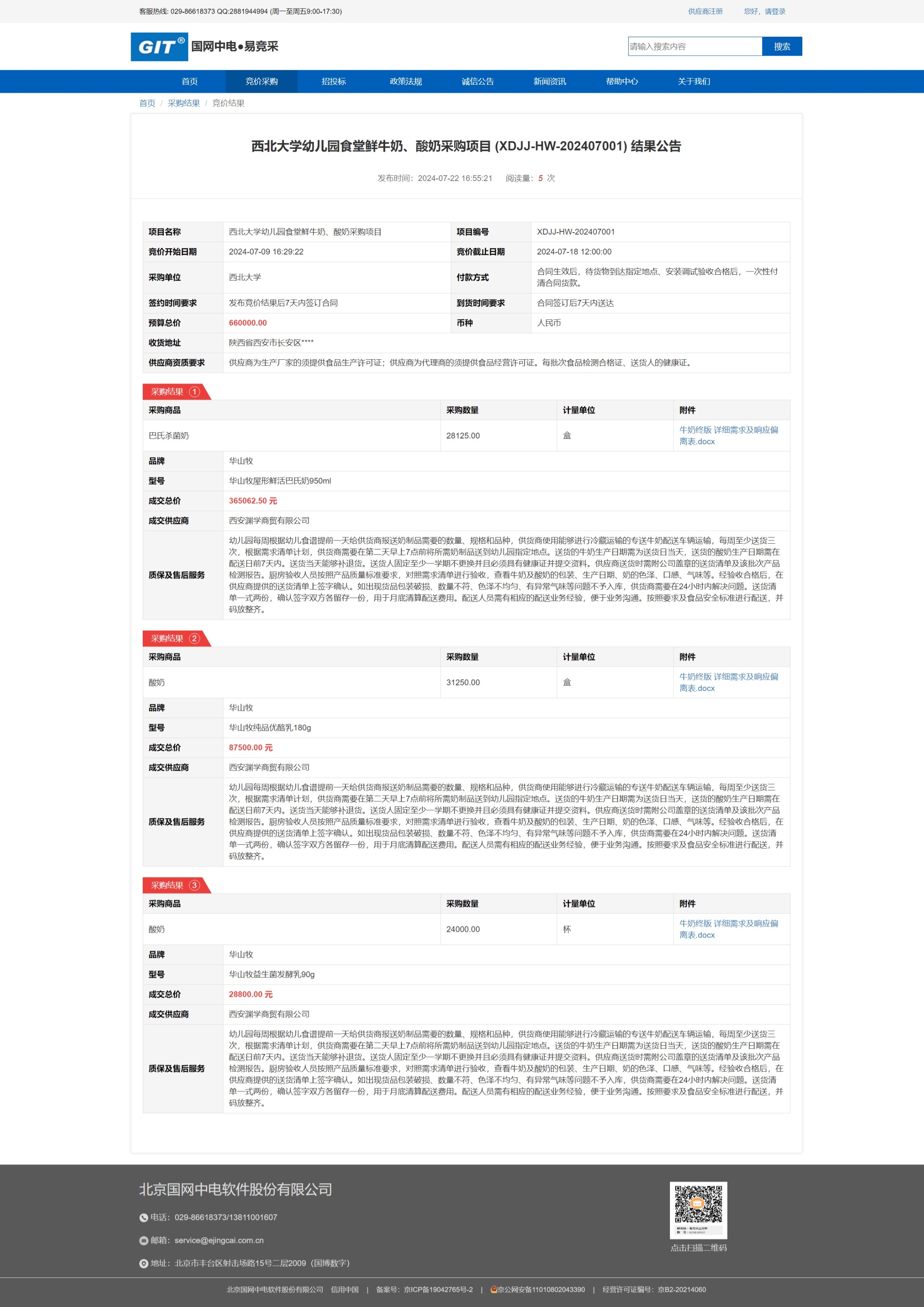 伟德国际1949始于英国幼儿园食堂鲜牛奶、酸奶采购项目 (XDJJ-HW-202407001) 竞价结果公告 作者: 编辑:采购与招标办公室 时间:2024-07-22 原公告链接:https://www.ejingcai.com.cn/site/bidding/detail/11809