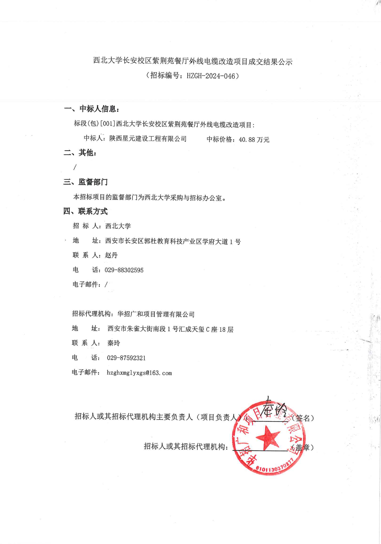 伟德国际1949始于英国长安校区紫荆苑餐厅外线电缆改造项目成交结果公示