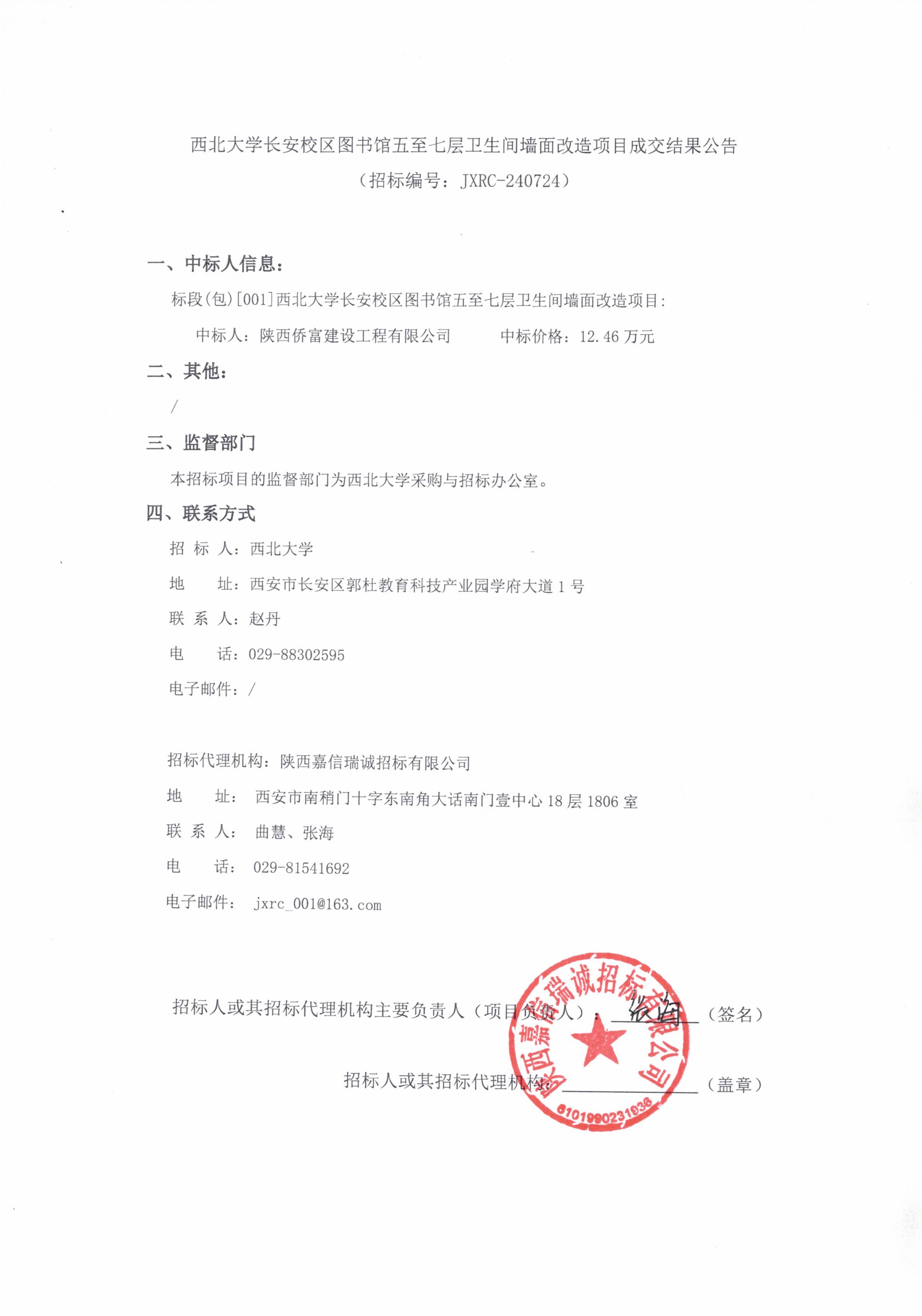 伟德国际1949始于英国长安校区图书馆五至七层卫生间墙面改造项目成交结果公告