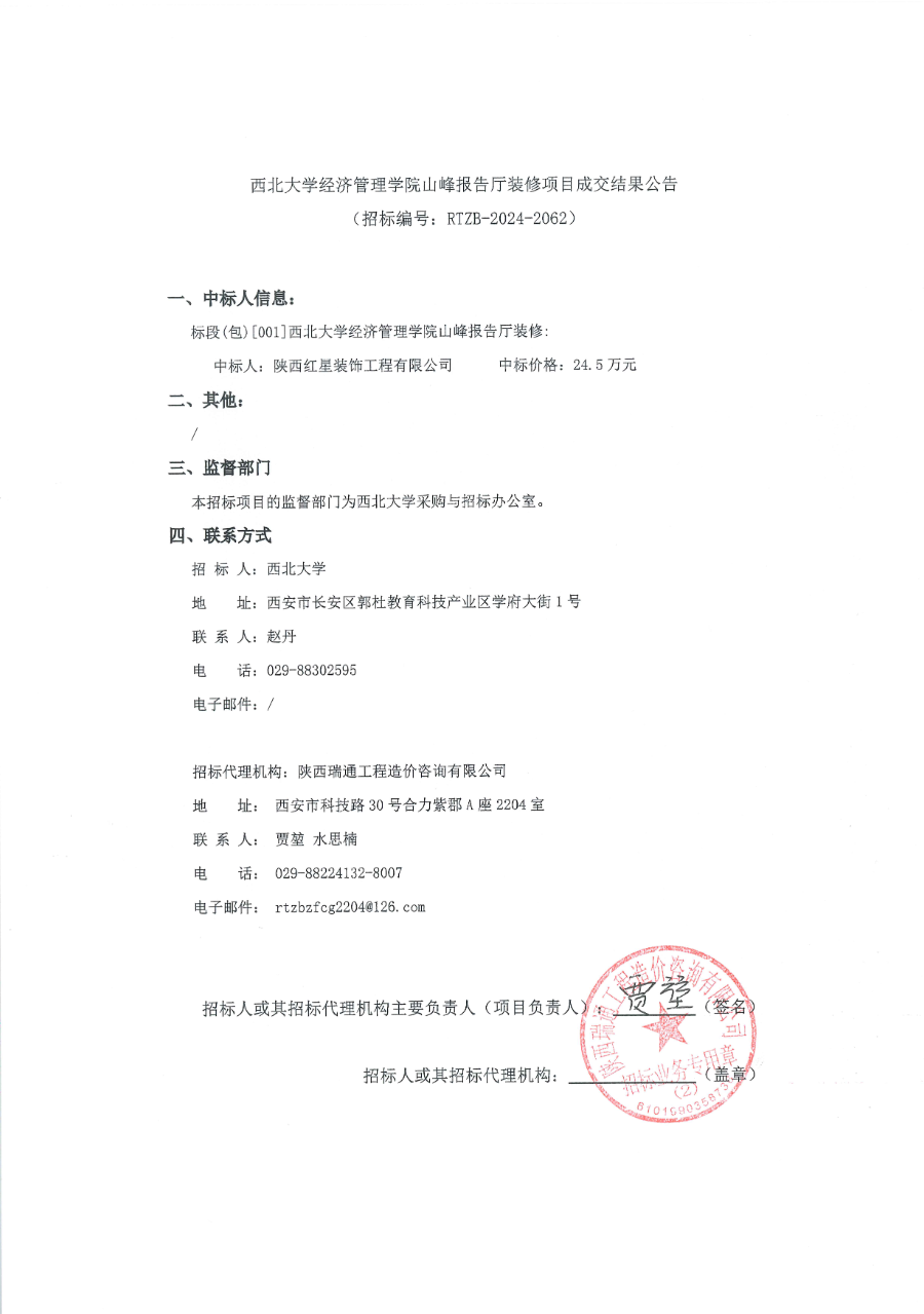 伟德国际1949始于英国经济管理学院山峰报告厅装修项目成交结果公告