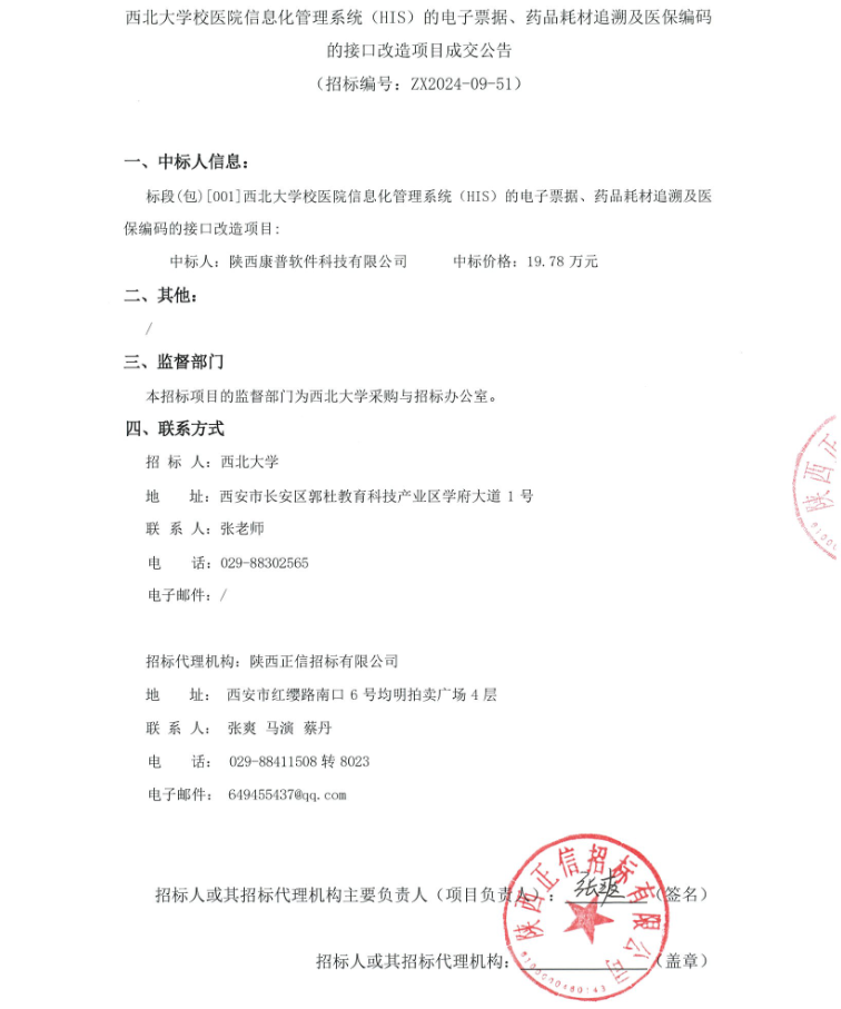 伟德国际1949始于英国校医院信息化管理系统(HIS)的电子票据、药品耗材追溯及医保编码的接口改造项目成交公告