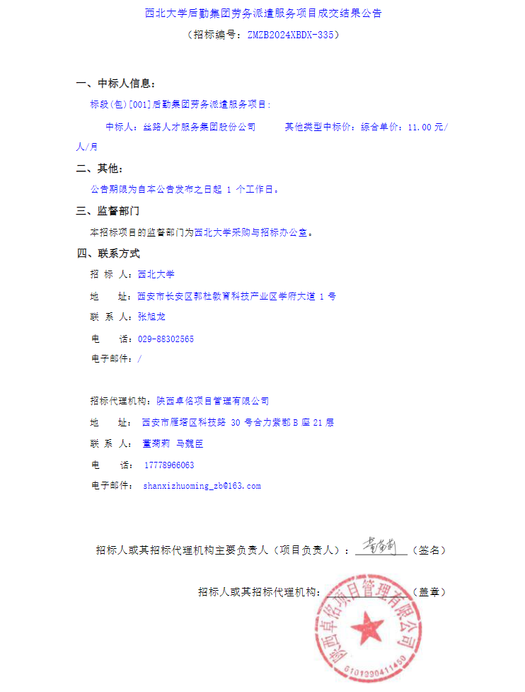 伟德国际1949始于英国后勤集团劳务派遣服务项目成交结果公告