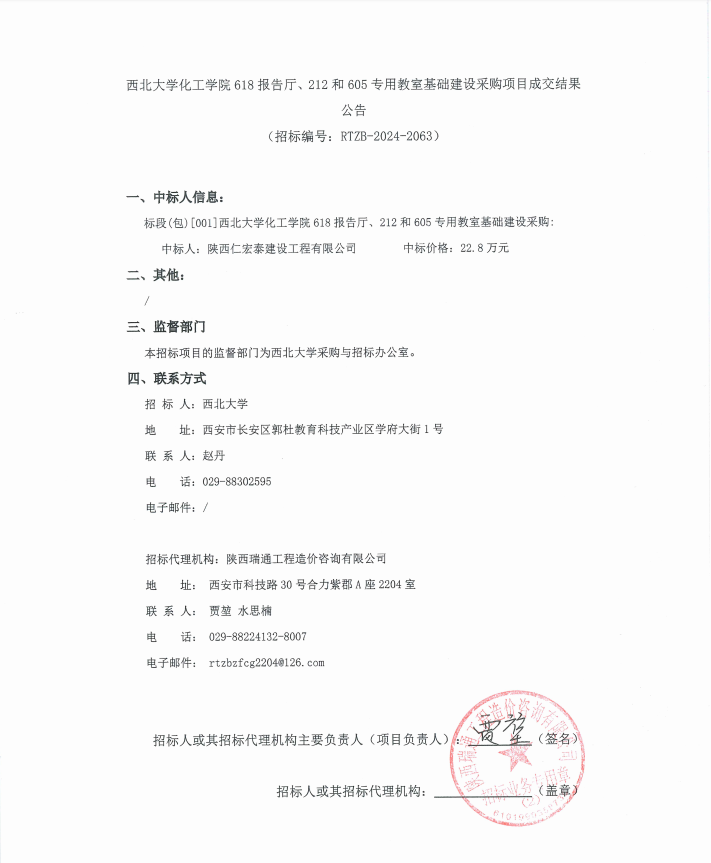 伟德国际1949始于英国化工学院618报告厅、212和605专用教室基础建设采购项目成交结果公告
