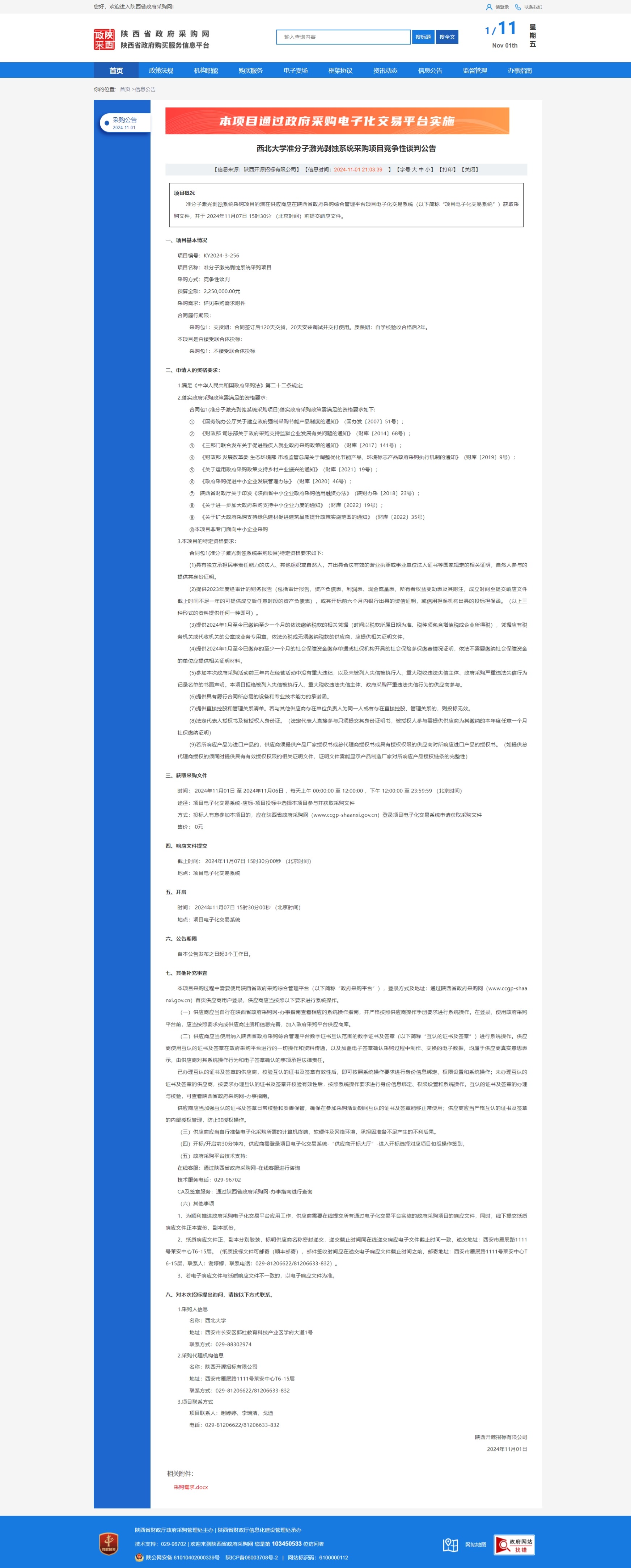 伟德国际1949始于英国准分子激光剥蚀系统采购项目竞争性谈判公告 作者: 编辑: 时间:2024-11-01 原公告链接:https://www.ccgp-shaanxi.gov.cn/freecms/site/shaanxi/ggxx/info/2024/8a69c251921857370192e7cd1e6468e7.html?noticeType=001013¬iceId=41ff9c47-9853-11ef-8063-08c0eb20c666