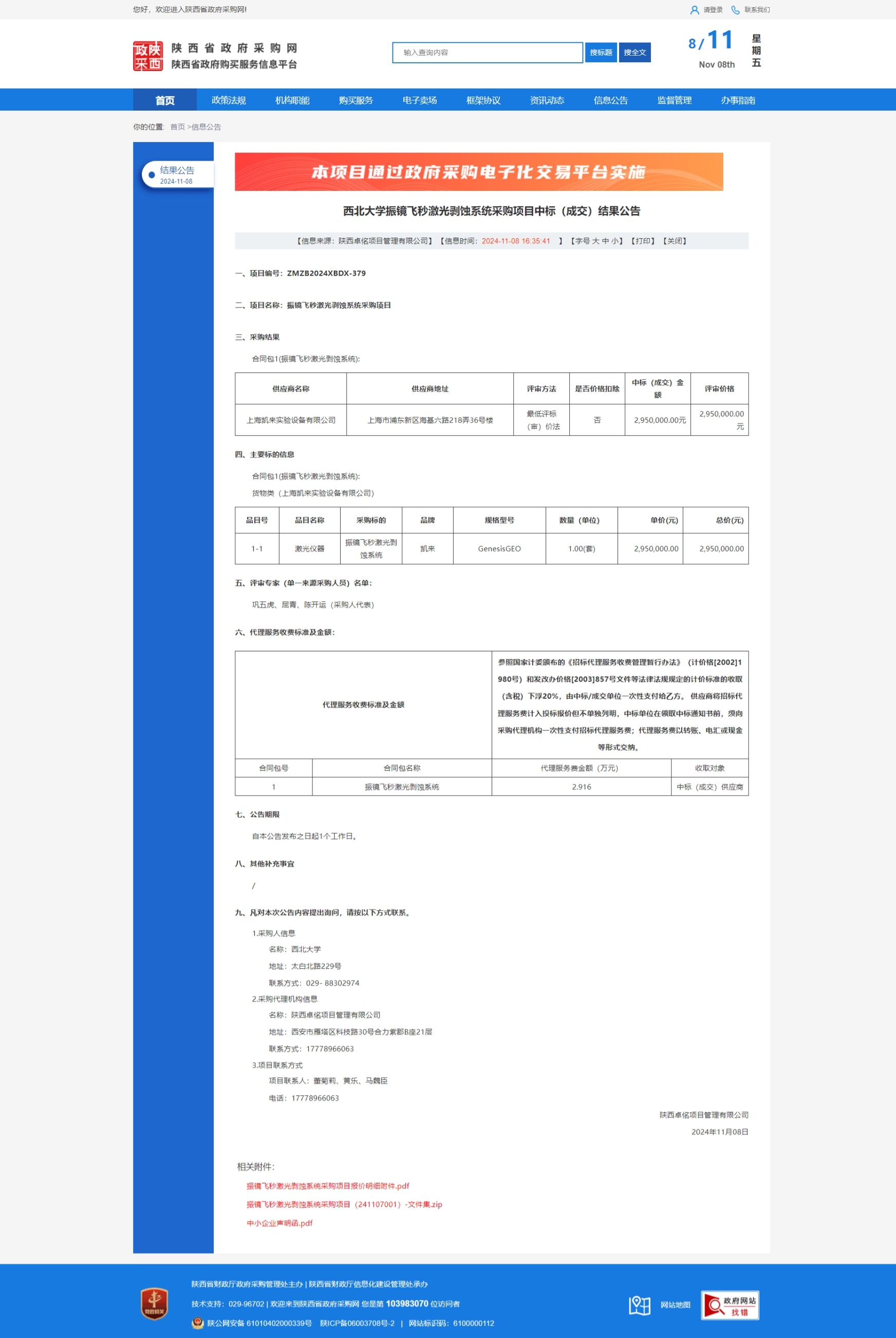 伟德国际1949始于英国振镜飞秒激光剥蚀系统采购项目中标(成交)结果公告 作者: 编辑:采购与招标办公室 时间:2024-11-08 原公告链接:https://www.ccgp-shaanxi.gov.cn/freecms/site/shaanxi/ggxx/info/2024/8a69c95d921859f001930ad889f25d3c.html?noticeType=001025¬iceId=fea4603f-9dad-11ef-8063-08c0eb20c666
