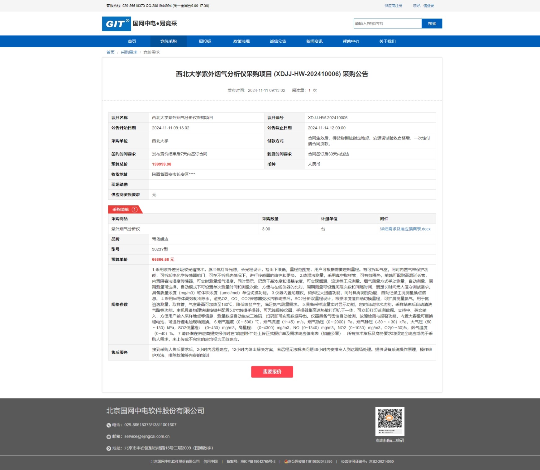 伟德国际1949始于英国紫外烟气分析仪采购项目 (XDJJ-HW-202410006) 竞价采购公告 作者: 编辑:采购与招标办公室 时间:2024-11-11 原公告链接:https://www.ejingcai.com.cn/site/bidding/detail/14592