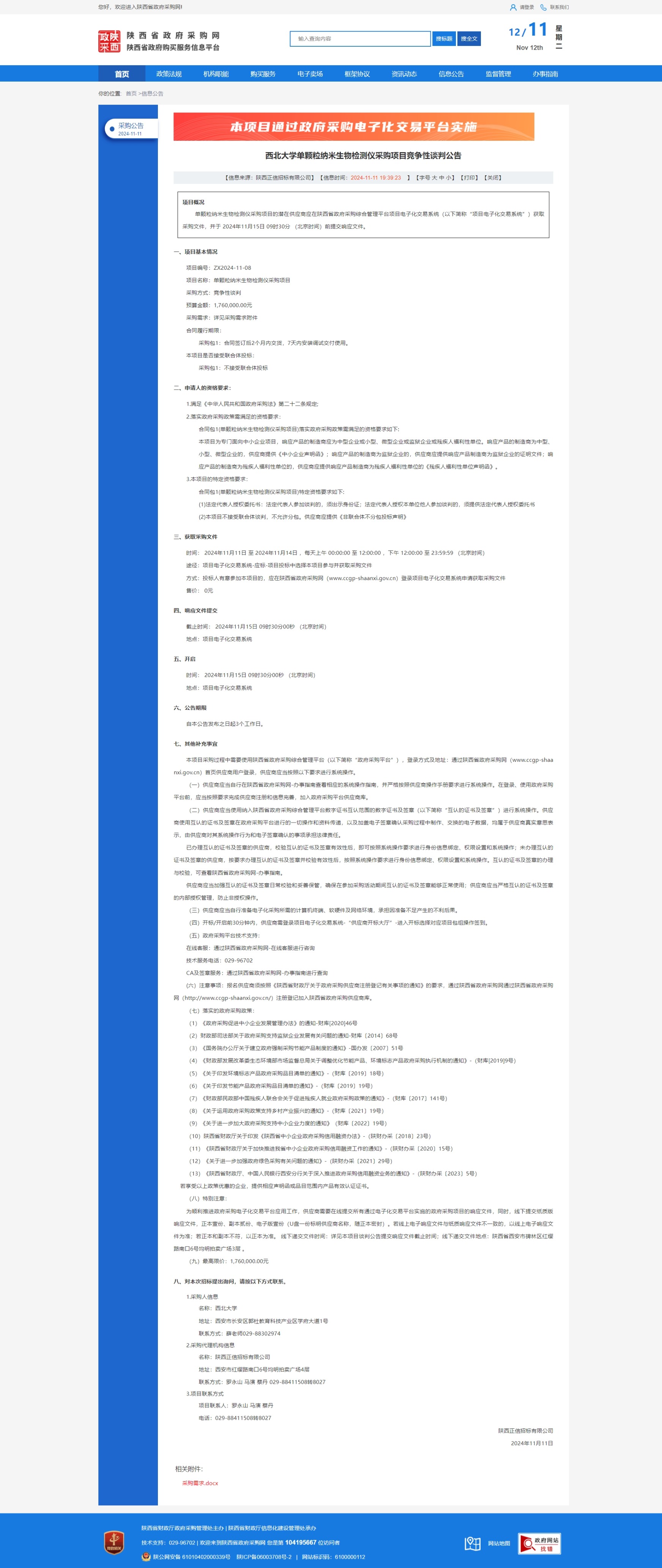 伟德国际1949始于英国单颗粒纳米生物检测仪采购项目竞争性谈判公告 作者: 编辑:薛利娟 时间:2024-11-12 原公告链接:https://www.ccgp-shaanxi.gov.cn/freecms/site/shaanxi/ggxx/info/2024/8a69c5a59218576d01931ae5a92607ad.html?noticeType=001013¬iceId=29519790-a023-11ef-8063-08c0eb20c666