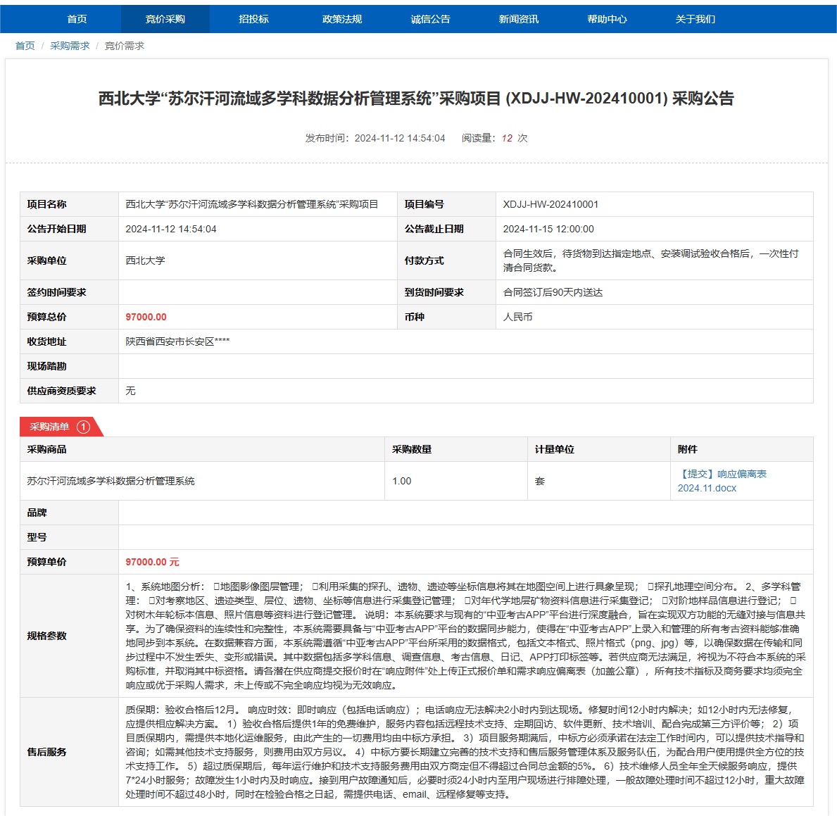 伟德国际1949始于英国“苏尔汗河流域多学科数据分析管理系统”采购项目(XDJJ-HW-202410001)竞价采购公告 作者:采购与招标办公室 编辑: 时间:2024-11-12 原公告链接:https://www.ejingcai.com.cn/site/bidding/detail/14753