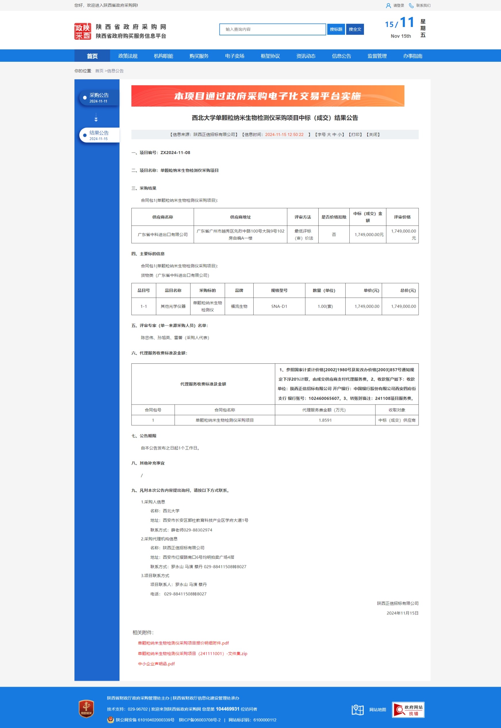 伟德国际1949始于英国单颗粒纳米生物检测仪采购项目中标(成交)结果公告 作者: 编辑:薛利娟 时间:2024-11-15 原公告链接:https://www.ccgp-shaanxi.gov.cn/freecms/site/shaanxi/ggxx/info/2024/8a69c95d921859f001932e1417a41a12.html?noticeType=001023¬iceId=b10ce9dd-a30e-11ef-8063-08c0eb20c666