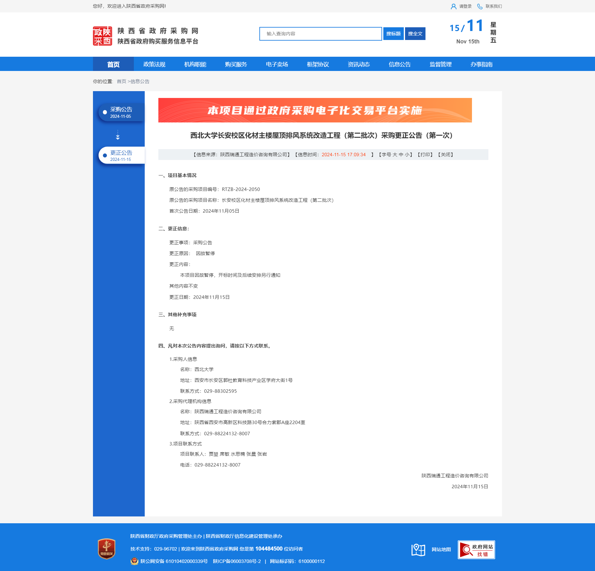 伟德国际1949始于英国长安校区化材主楼屋顶排风系统改造工程(第二批次)暂停公告