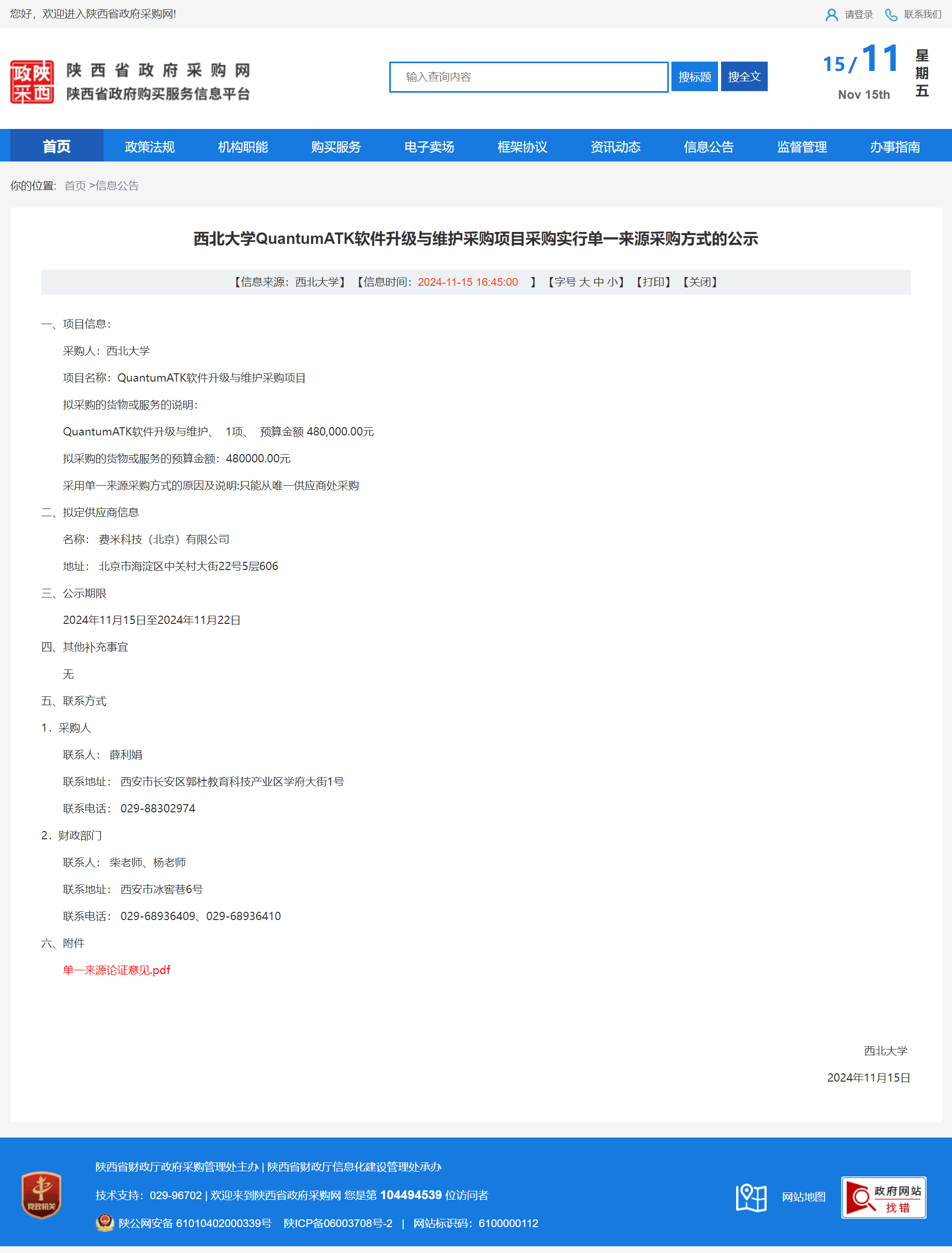 伟德国际1949始于英国QuantumATK软件升级与维护采购项目采购实行单一来源采购方式的公示