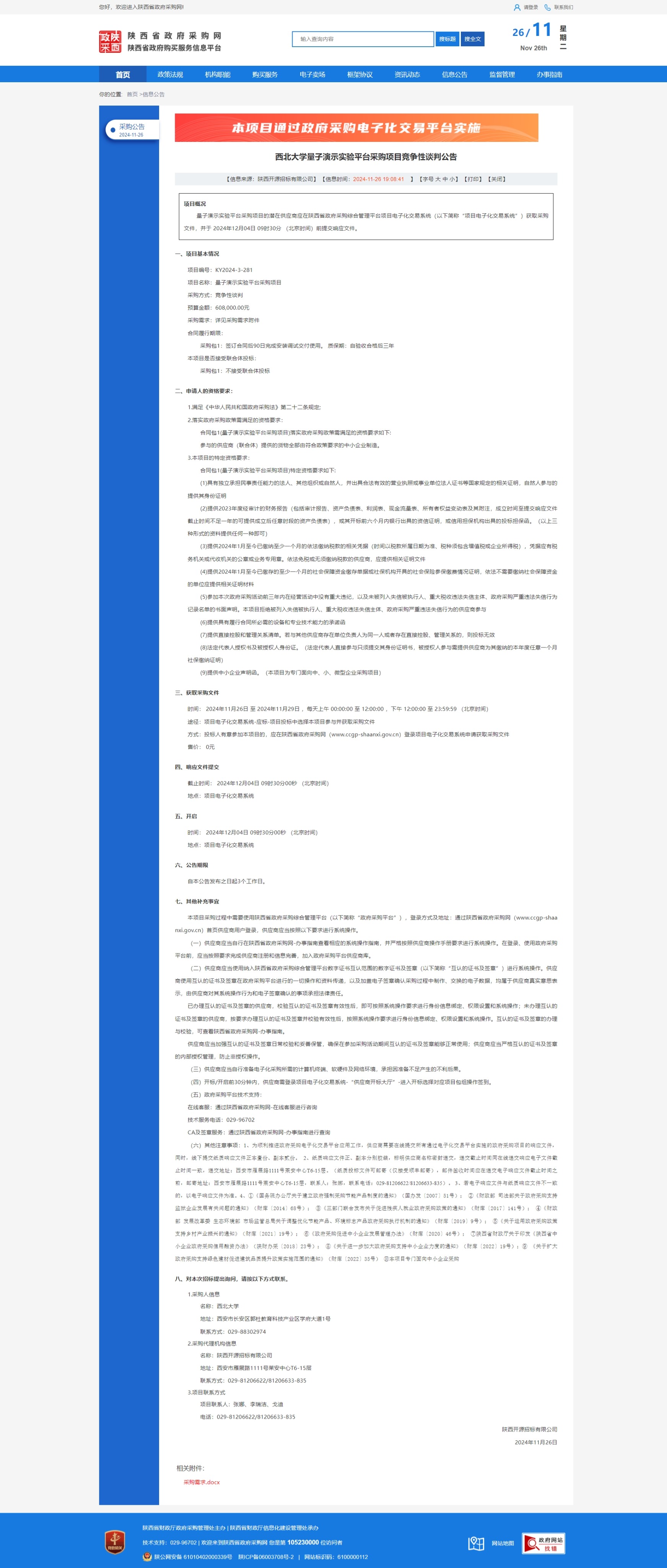伟德国际1949始于英国量子演示实验平台采购项目竞争性谈判公告 作者: 编辑:薛利娟 时间:2024-11-26 原公告链接:https://www.ccgp-shaanxi.gov.cn/freecms/site/shaanxi/ggxx/info/2024/8a69c44e9218572b0193681e9220574d.html?noticeType=001013¬iceId=6276d604-abe8-11ef-8063-08c0eb20c666