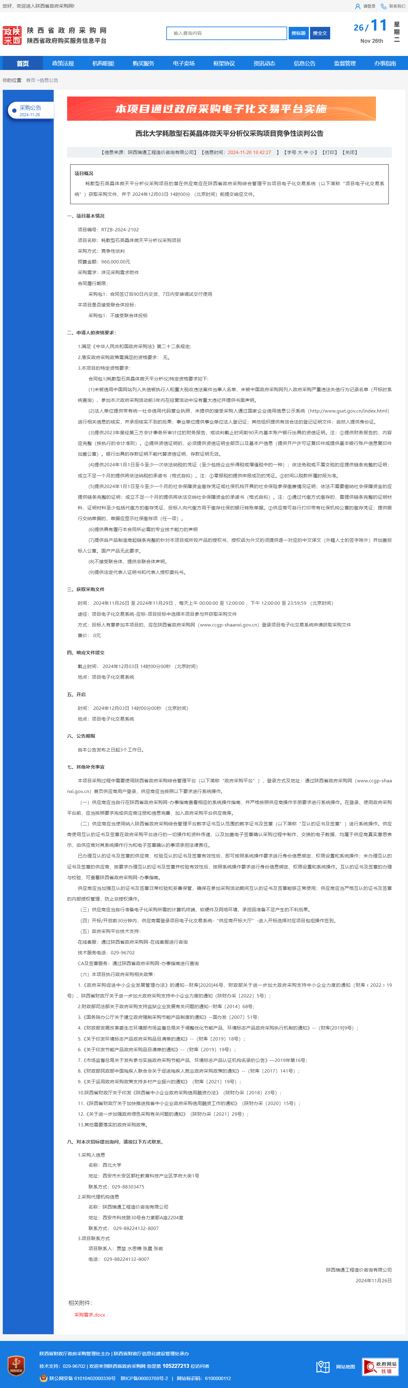 伟德国际1949始于英国耗散型石英晶体微天平分析仪采购项目竞争性谈判公告 作者:采购与招标办公室 编辑: 时间:2024-11-26 原公告链接:http://www.ccgp-shaanxi.gov.cn/freecms/site/shaanxi/ggxx/info/2024/8a69c251921857370193680865e86269.html?noticeType=001013¬iceId=b80e3459-abe4-11ef-8063-08c0eb20c666