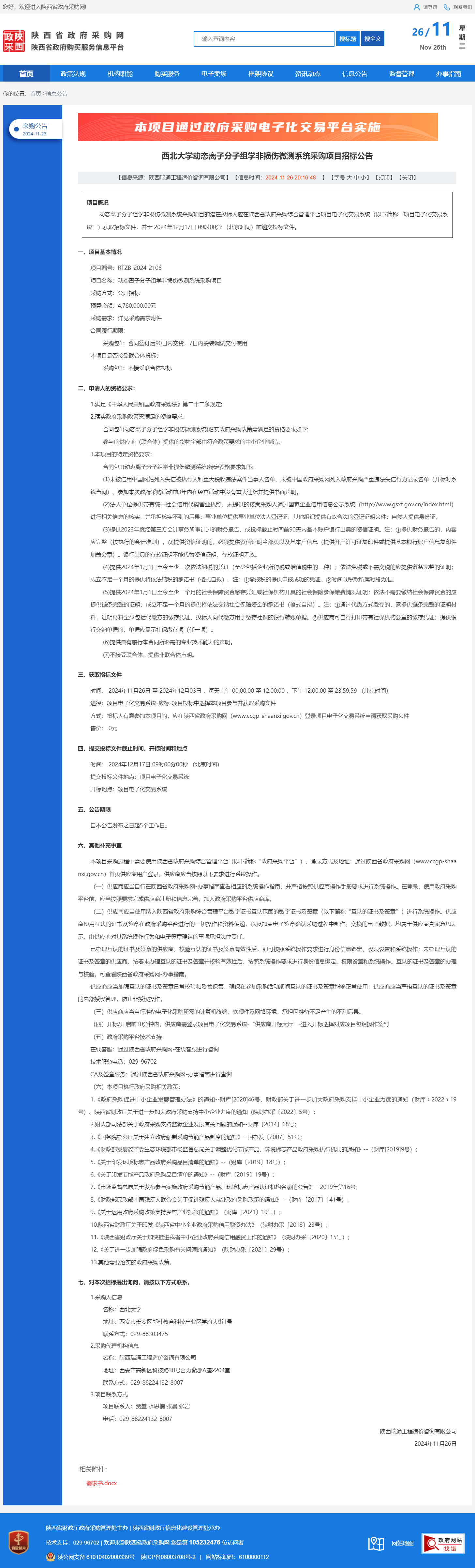 伟德国际1949始于英国动态离子分子组学非损伤微测系统采购项目招标公告 作者:采购与招标办公室 编辑: 时间:2024-11-26 原公告链接:http://www.ccgp-shaanxi.gov.cn/freecms/site/shaanxi/ggxx/info/2024/8a69c95d921859f00193685d31243738.html?noticeType=001011¬iceId=e6602f79-abf1-11ef-8063-08c0eb20c666