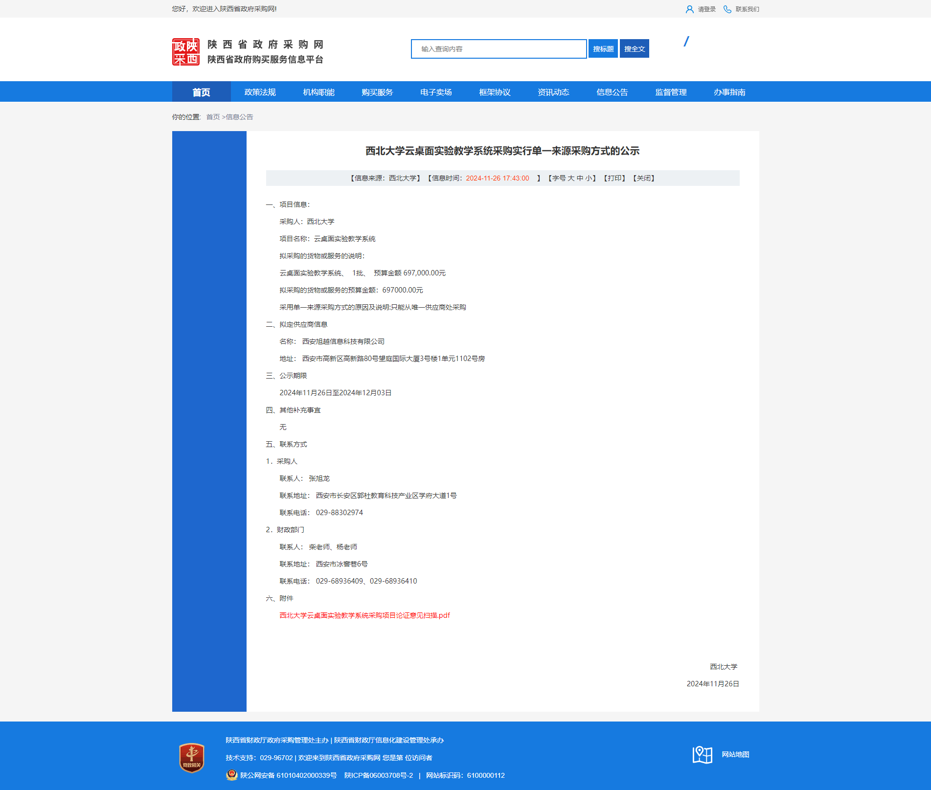 伟德国际1949始于英国云桌面实验教学系统采购实行单一来源采购方式的公示