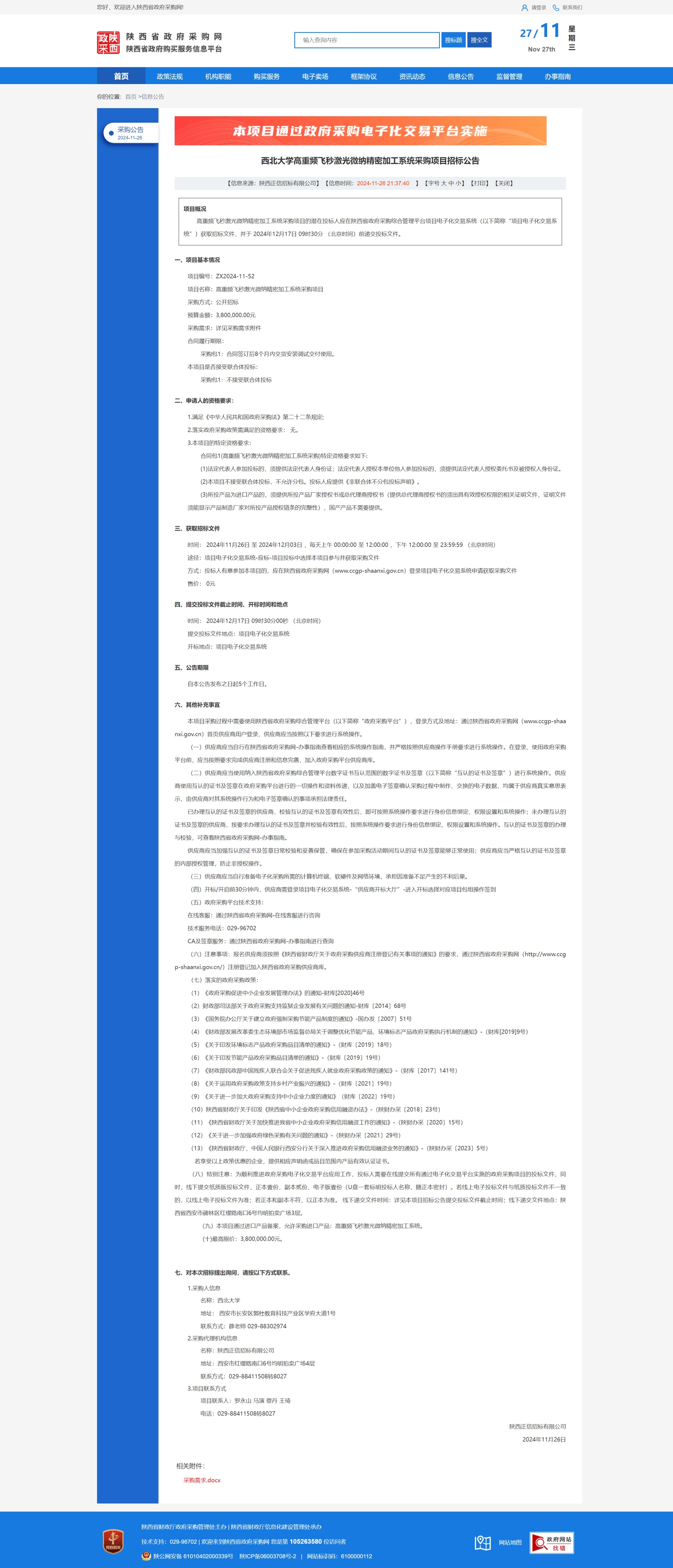 伟德国际1949始于英国高重频飞秒激光微纳精密加工系统采购项目招标公告 作者: 编辑:薛利娟 时间:2024-11-27 原公告链接:https://www.ccgp-shaanxi.gov.cn/freecms/site/shaanxi/ggxx/info/2024/8a69c5a59218576d0193689b9b175d98.html?noticeType=001011¬iceId=32a5eef2-abfd-11ef-8063-08c0eb20c666