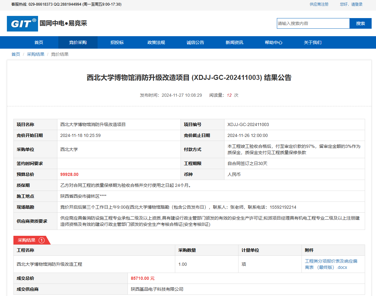 伟德国际1949始于英国博物馆消防升级改造项目(XDJJ-GC-202411003)竞价结果公告 作者:采购与招标办公室 编辑: 时间:2024-11-27 原公告链接:https://www.ejingcai.com.cn/site/bidding/detail/15427