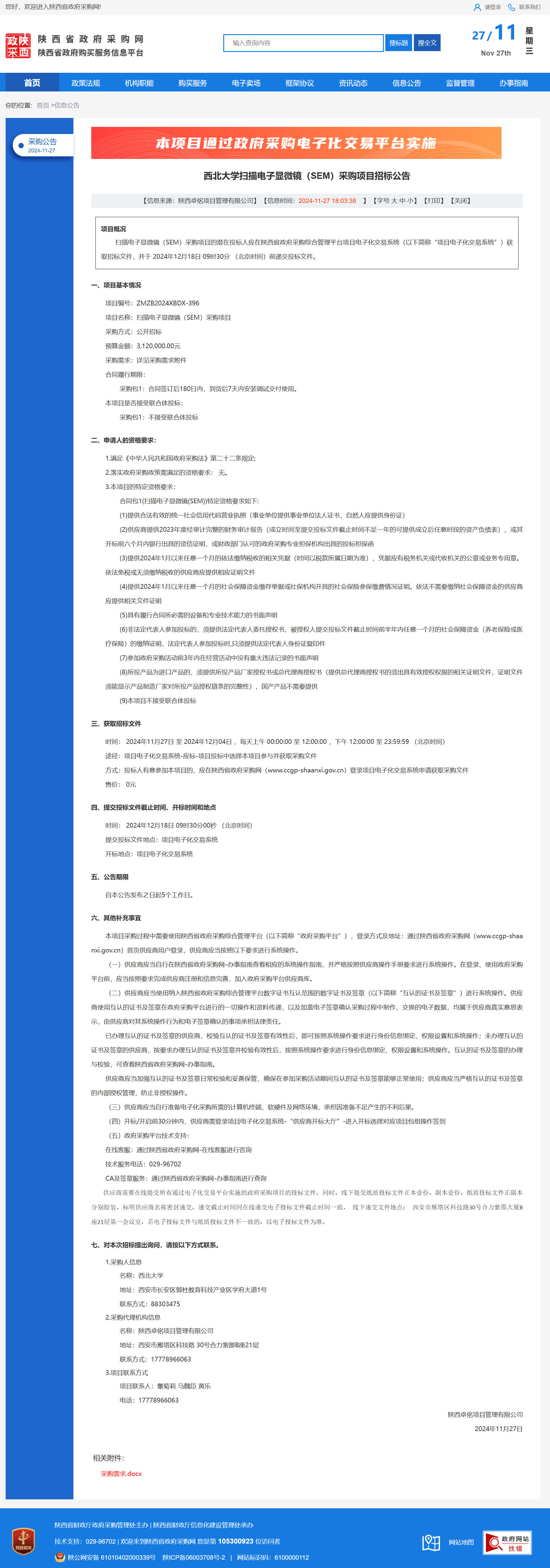 伟德国际1949始于英国扫描电子显微镜(SEM)采购项目招标公告 作者:采购与招标办公室 编辑: 时间:2024-11-27 原公告链接:https://www.ccgp-shaanxi.gov.cn/freecms/site/shaanxi/ggxx/info/2024/8a69c2519218573701936d0854fb38e9.html?noticeType=001011¬iceId=76c9ca4c-aca8-11ef-8063-08c0eb20c666