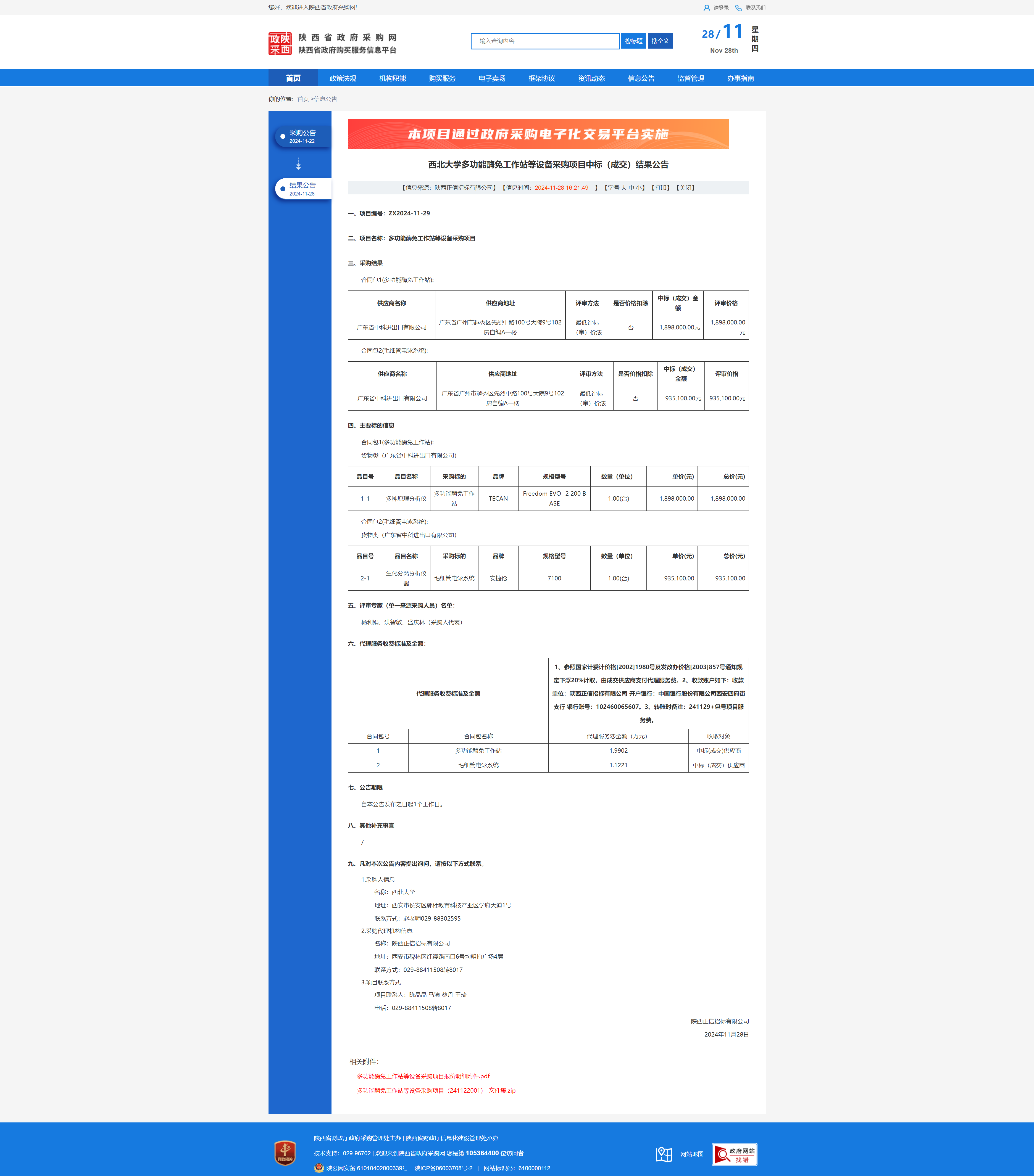 伟德国际1949始于英国多功能酶免工作站等设备采购项目中标(成交)结果公告