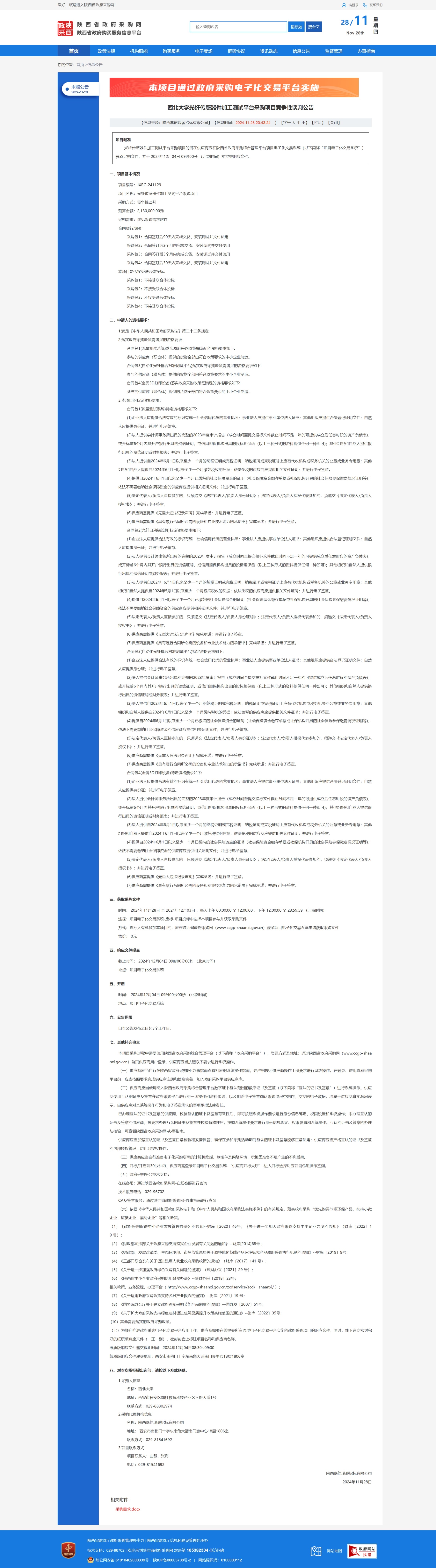 伟德国际1949始于英国光纤传感器件加工测试平台采购项目竞争性谈判公告 作者: 编辑:薛利娟 时间:2024-11-28 原公告链接:https://www.ccgp-shaanxi.gov.cn/freecms/site/shaanxi/ggxx/info/2024/8a69c95d921859f0019372bce9754d0c.html?noticeType=001013¬iceId=f3d424e2-ad87-11ef-8063-08c0eb20c666