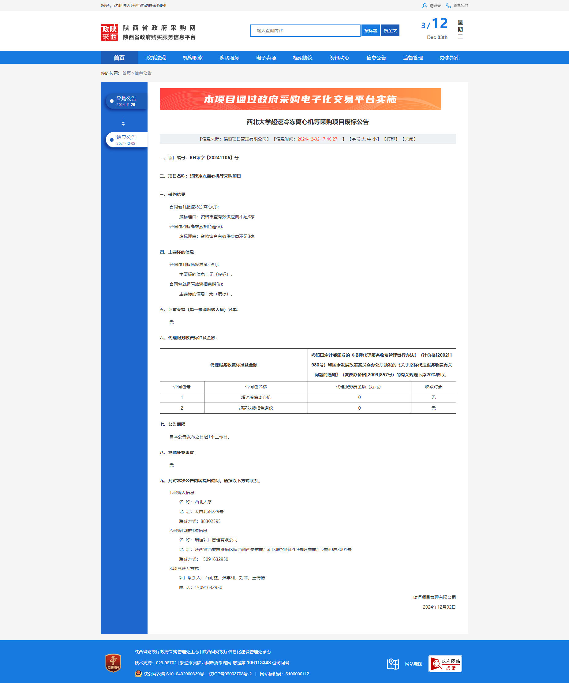 伟德国际1949始于英国超速冷冻离心机等采购项目废标公告