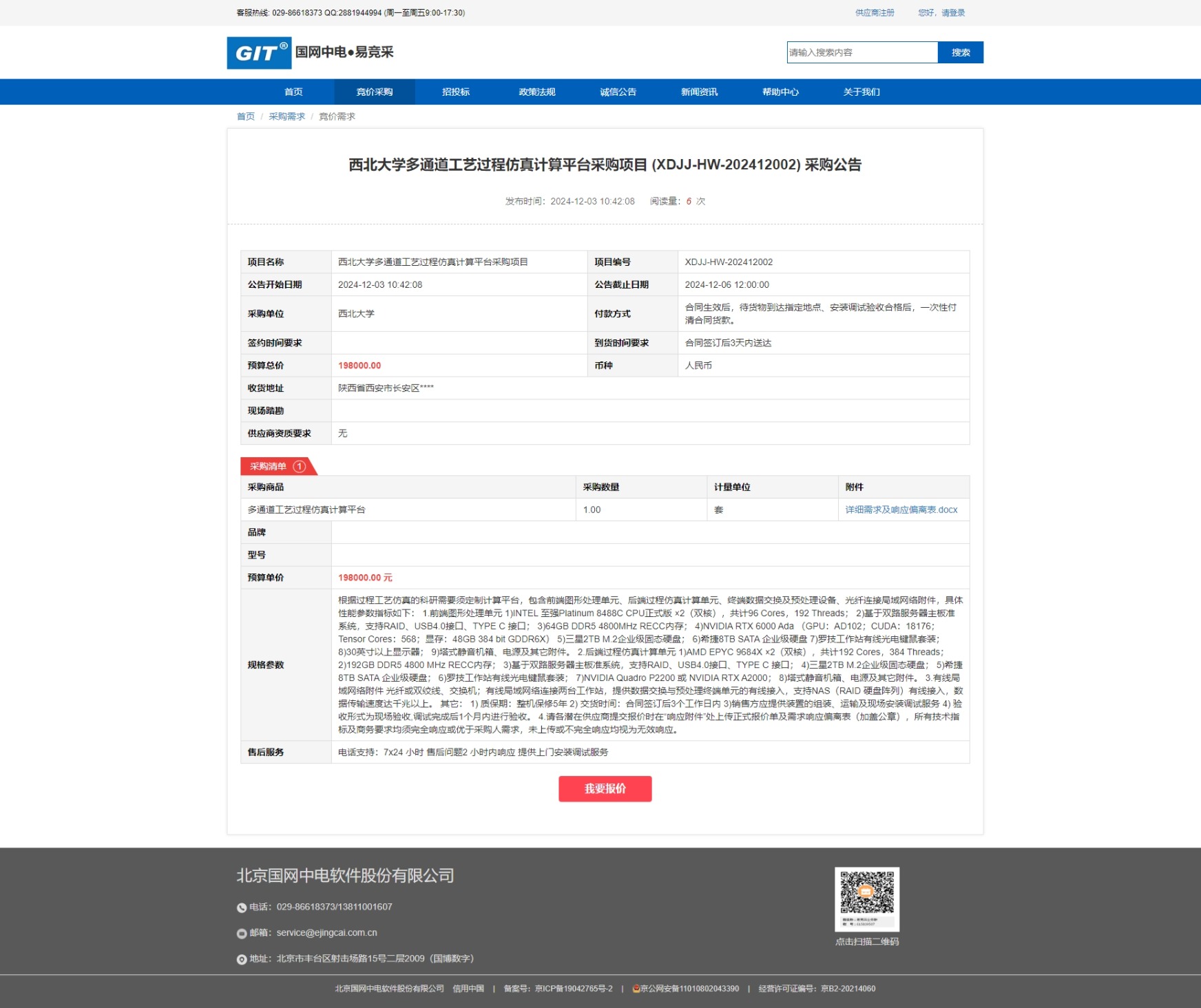 伟德国际1949始于英国多通道工艺过程仿真计算平台采购项目 (XDJJ-HW-202412002) 竞价采购公告 作者: 编辑:薛利娟 时间:2024-12-03 原公告链接:https://www.ejingcai.com.cn/site/bidding/detail/15600