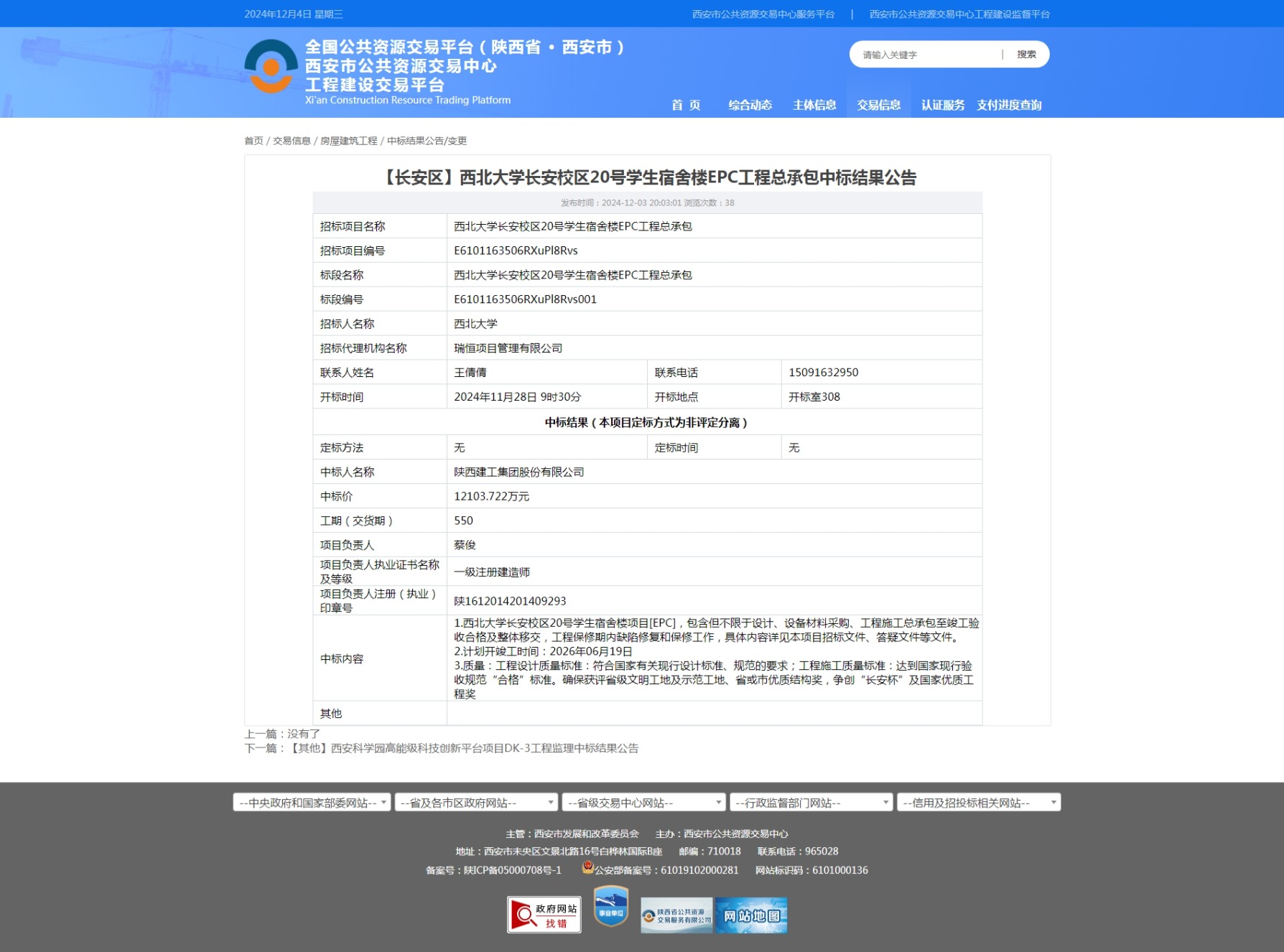 伟德国际1949始于英国长安校区20号学生宿舍楼EPC工程总承包中标结果公告