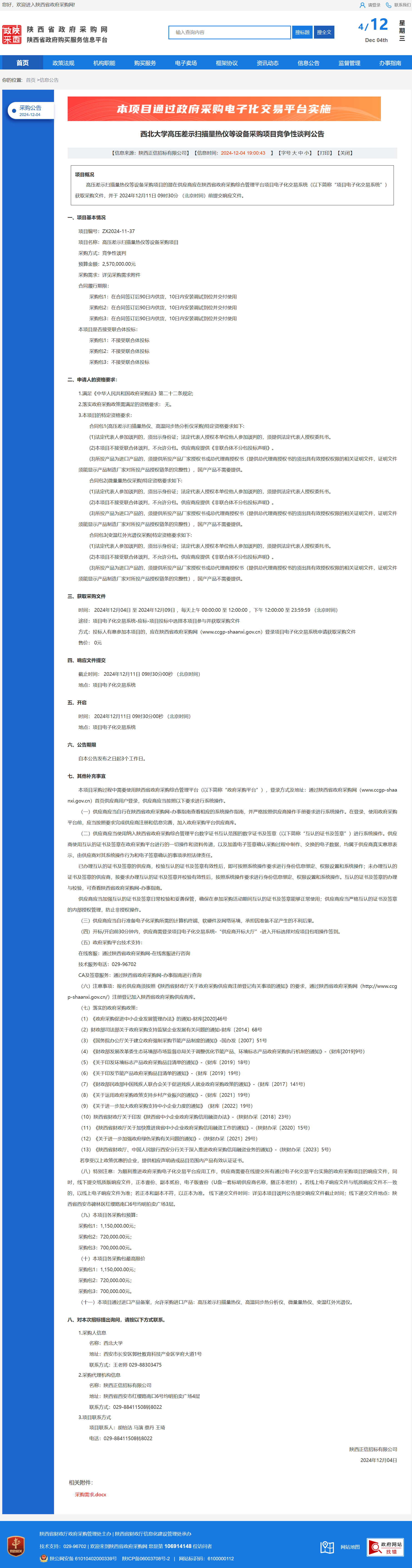 伟德国际1949始于英国高压差示扫描量热仪等设备采购项目竞争性谈判公告 作者:采购与招标办公室 编辑: 时间:2024-12-04 原公告链接:https://www.ccgp-shaanxi.gov.cn/freecms/site/shaanxi/ggxx/info/2024/8a69c5a59218576d0193913c35b35476.html?noticeType=001013¬iceId=9d4d6b86-b230-11ef-8063-08c0eb20c666