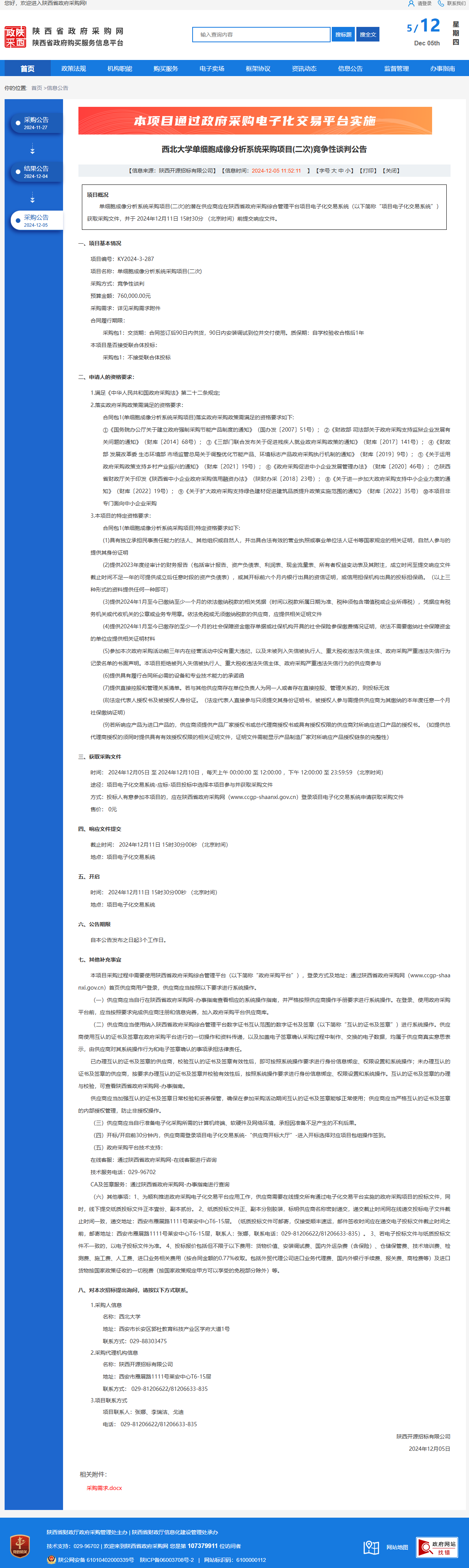 伟德国际1949始于英国单细胞成像分析系统采购项目(二次)竞争性谈判公告 作者:采购与招标办公室 编辑: 时间:2024-12-05 原公告链接:https://www.ccgp-shaanxi.gov.cn/freecms/site/shaanxi/ggxx/info/2024/8a69c251921857370193912b91403442.html?noticeType=001013¬iceId=e9b719c8-b2bd-11ef-8063-08c0eb20c666
