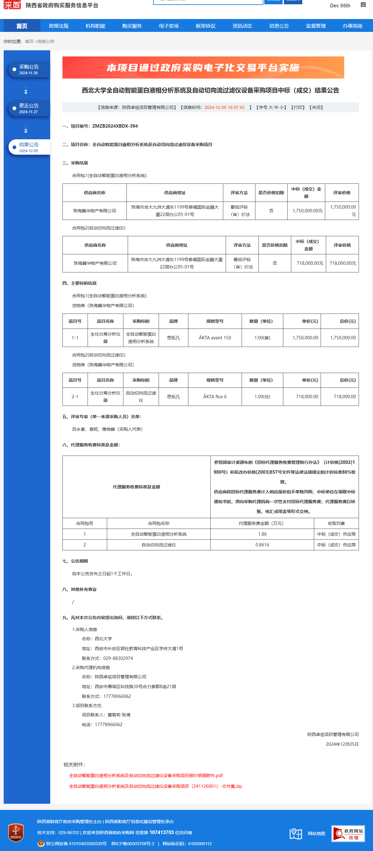伟德国际1949始于英国全自动智能蛋白液相分析系统及自动切向流过滤仪设备采购项目中标(成交)结果公告 作者:采购与招标办公室 编辑: 时间:2024-12-05 原公告链接:https://www.ccgp-shaanxi.gov.cn/freecms/site/shaanxi/ggxx/info/2024/8a69c44e9218572b01939643fffe267c.html?noticeType=001023¬iceId=5fe3fe15-b2f2-11ef-8063-08c0eb20c666