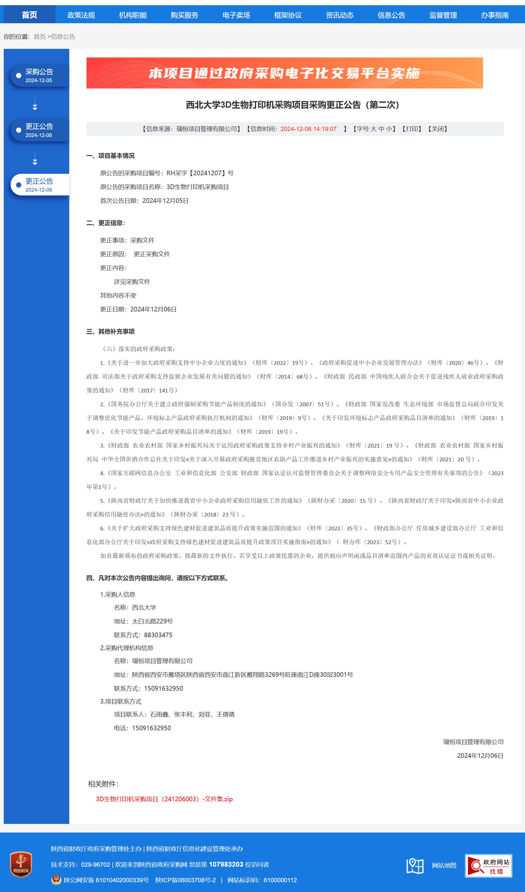 伟德国际1949始于英国3D生物打印机采购项目采购更正公告(第二次) 作者:采购与招标办公室 编辑: 时间:2024-12-06 原公告链接:https://www.ccgp-shaanxi.gov.cn/freecms/site/shaanxi/ggxx/info/2024/8a69c5a59218576d01939a447c2a1448.html?noticeType=001031¬iceId=9bb5c25d-b39b-11ef-8063-08c0eb20c666