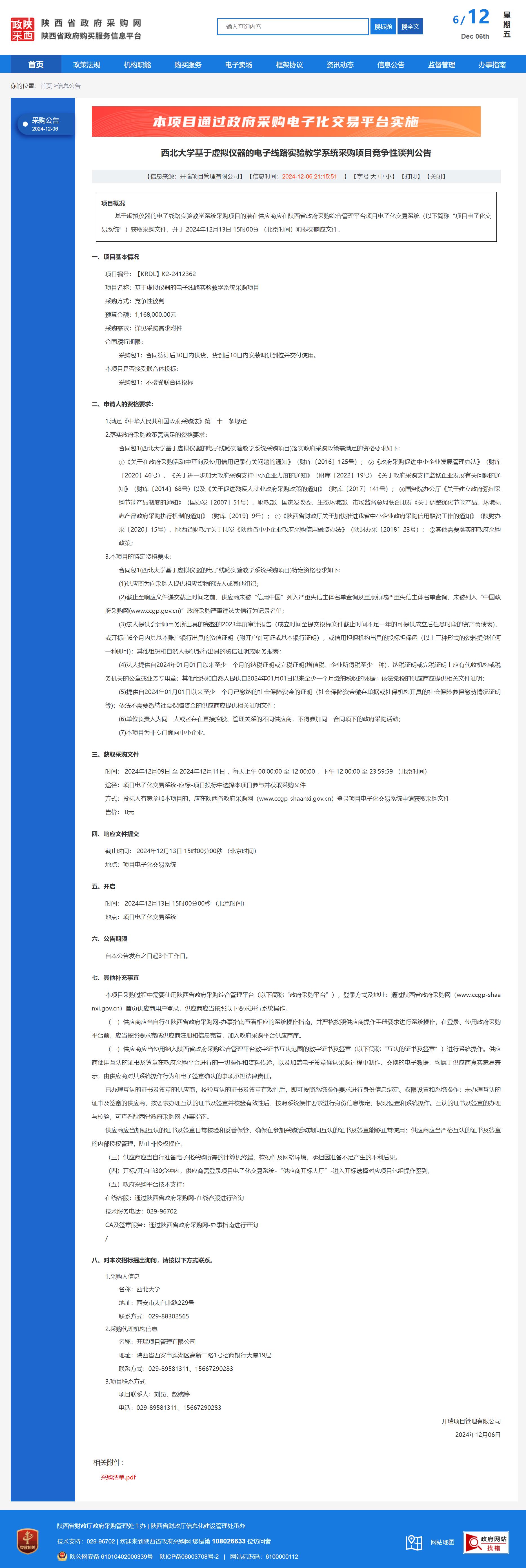 伟德国际1949始于英国基于虚拟仪器的电子线路实验教学系统采购项目竞争性谈判公告