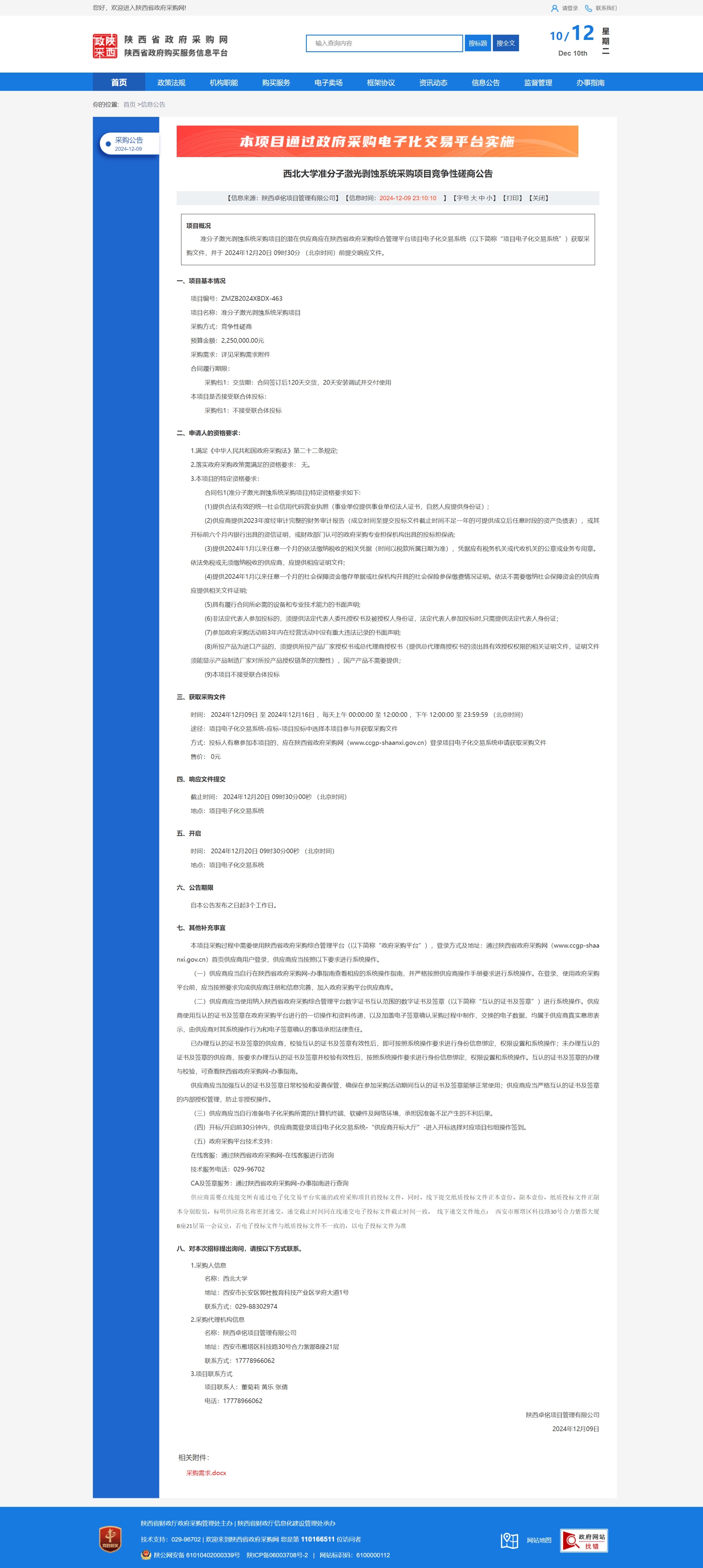 伟德国际1949始于英国准分子激光剥蚀系统采购项目竞争性磋商公告 作者: 编辑:薛利娟 时间:2024-12-10 原公告链接:https://www.ccgp-shaanxi.gov.cn/freecms/site/shaanxi/ggxx/info/2024/8a69c44e9218572b0193abf2be5c4250.html?noticeType=001016¬iceId=4c4263c6-b641-11ef-8063-08c0eb20c666