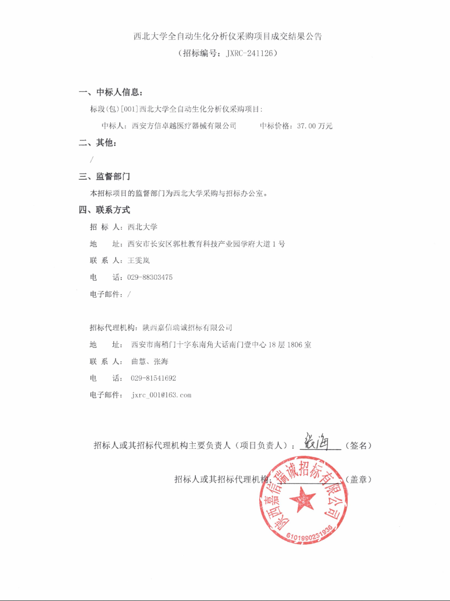 伟德国际1949始于英国全自动生化分析仪采购项目成交结果公告 作者:采购与招标办公室 编辑: 时间:2024-12-10 原公告链接:http://bulletin.sntba.com/resultBulletin/2024-12-10/1995691.html
