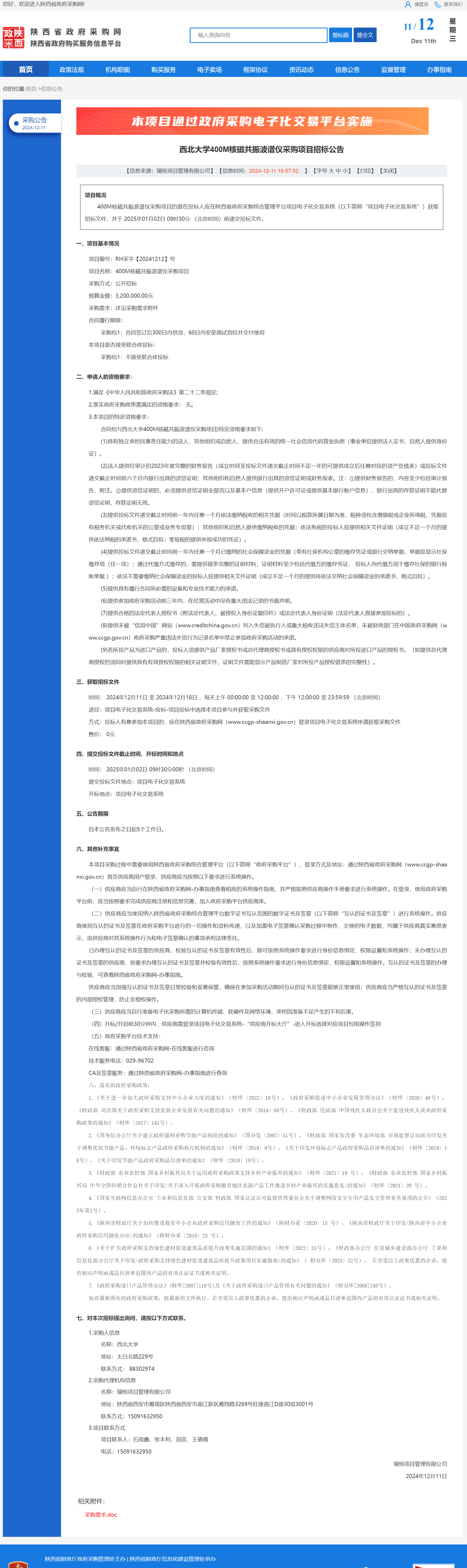 伟德国际1949始于英国400M核磁共振波谱仪采购项目招标公告 作者:采购与招标办公室 编辑: 时间:2024-12-11 原公告链接:http://www.ccgp-shaanxi.gov.cn/freecms/site/shaanxi/ggxx/info/2024/8a69c95d921859f00193b4e3ff640a05.html?noticeType=001011¬iceId=9f736373-b79f-11ef-8063-08c0eb20c666
