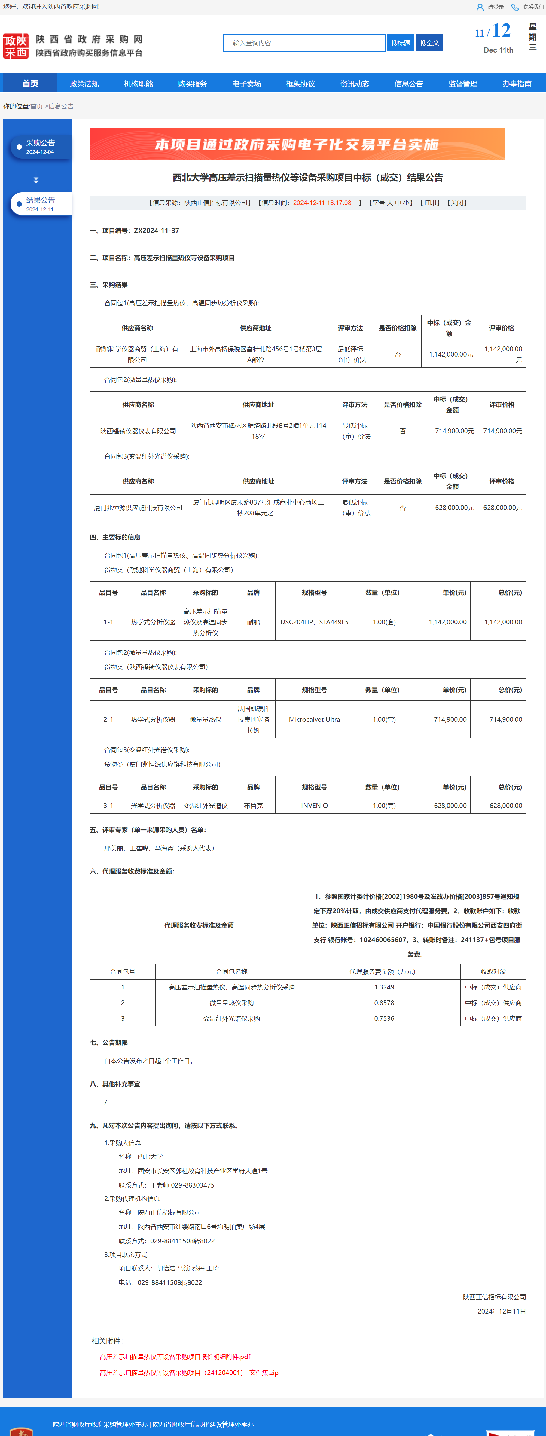 伟德国际1949始于英国高压差示扫描量热仪等设备采购项目中标(成交)结果公告 作者:采购与招标办公室 编辑: 时间:2024-12-11 原公告链接:https://www.ccgp-shaanxi.gov.cn/freecms/site/shaanxi/ggxx/info/2024/8a69c44e9218572b0193b4b4345f2fdb.html?noticeType=001023¬iceId=b2939b12-b7aa-11ef-8063-08c0eb20c666