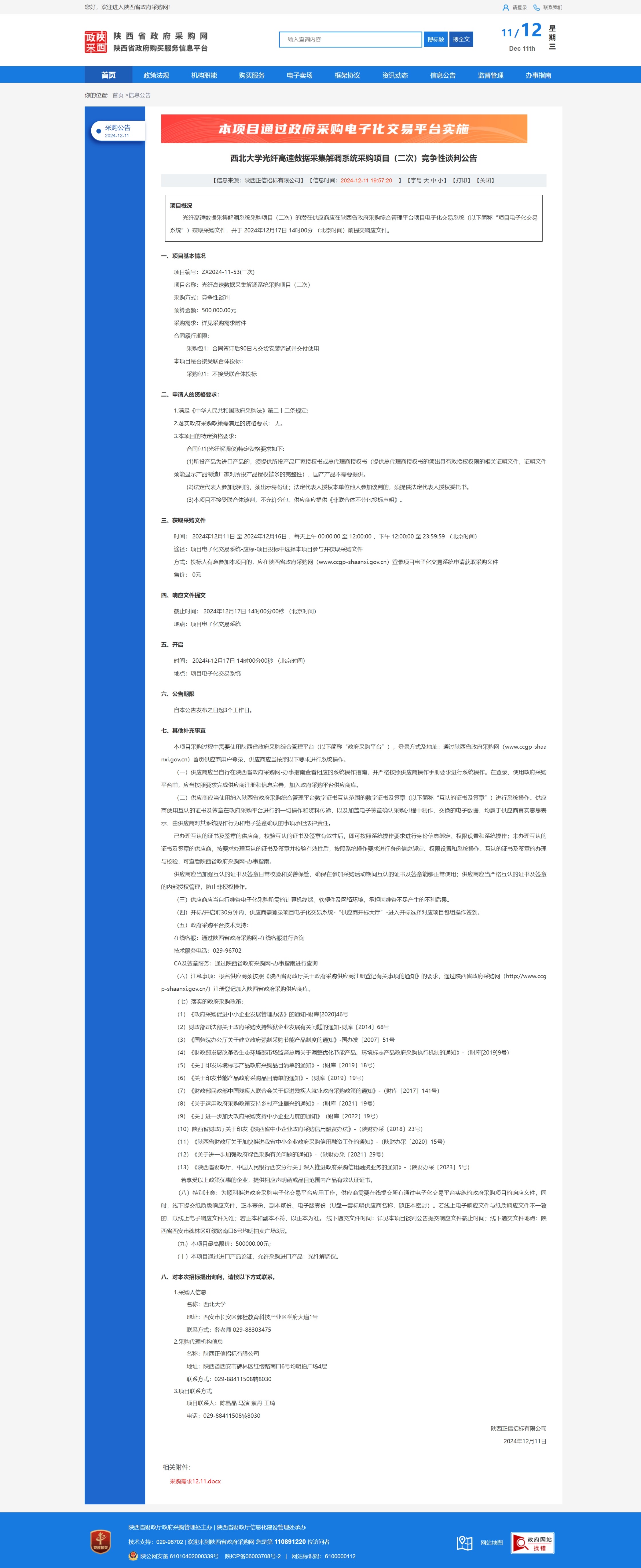 伟德国际1949始于英国光纤高速数据采集解调系统采购项目(二次)竞争性谈判公告 作者: 编辑:薛利娟 时间:2024-12-11 原公告链接:https://www.ccgp-shaanxi.gov.cn/freecms/site/shaanxi/ggxx/info/2024/8a69c251921857370193b57e9b8200ae.html?noticeType=001013¬iceId=b1b907cc-b7b8-11ef-8063-08c0eb20c666