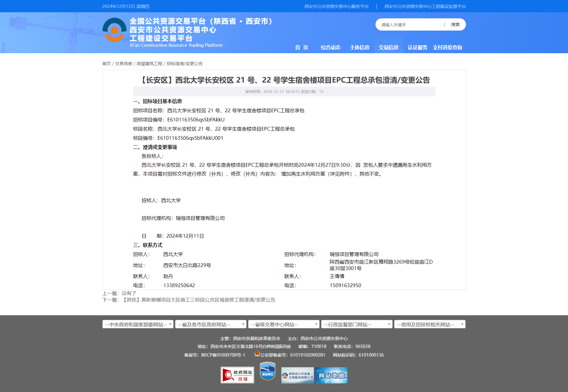 伟德国际1949始于英国长安校区 21 号、22 号学生宿舍楼项目EPC工程总承包澄清/变更公告