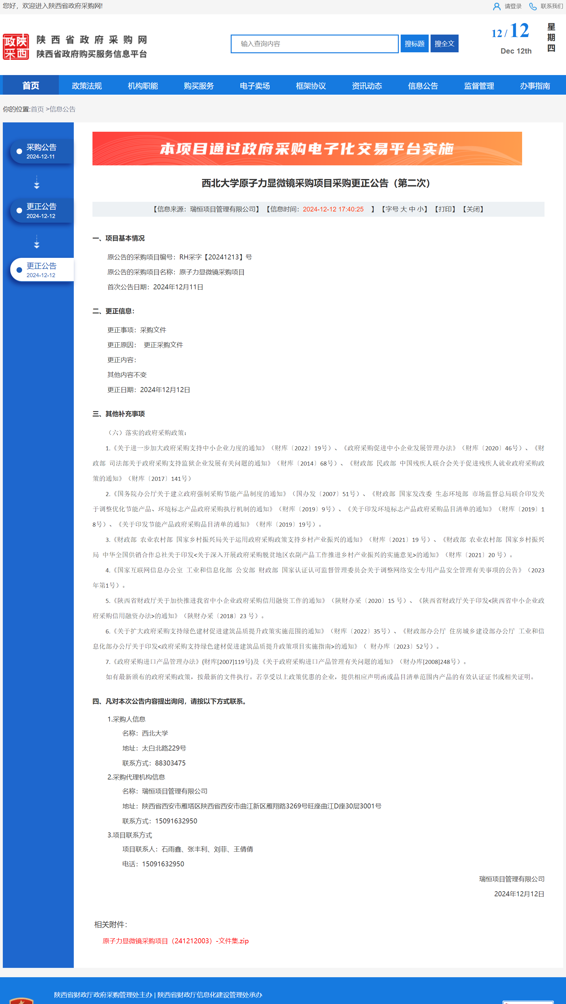 伟德国际1949始于英国原子力显微镜采购项目采购更正公告(第二次) 作者:采购与招标办公室 编辑: 时间:2024-12-12 原公告链接:https://www.ccgp-shaanxi.gov.cn/freecms/site/shaanxi/ggxx/info/2024/8a69c5a59218576d0193ba3c419e1460.html?noticeType=001031¬iceId=bbffc791-b86e-11ef-8063-08c0eb20c666