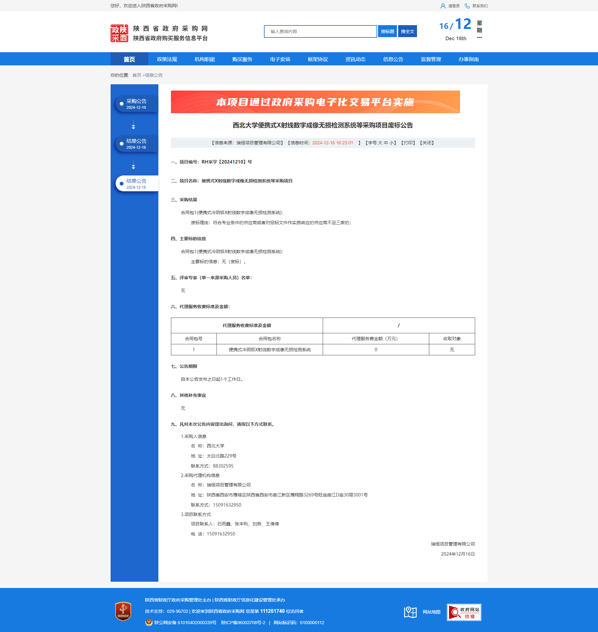 伟德国际1949始于英国便携式X射线数字成像无损检测系统等采购项目废标公告