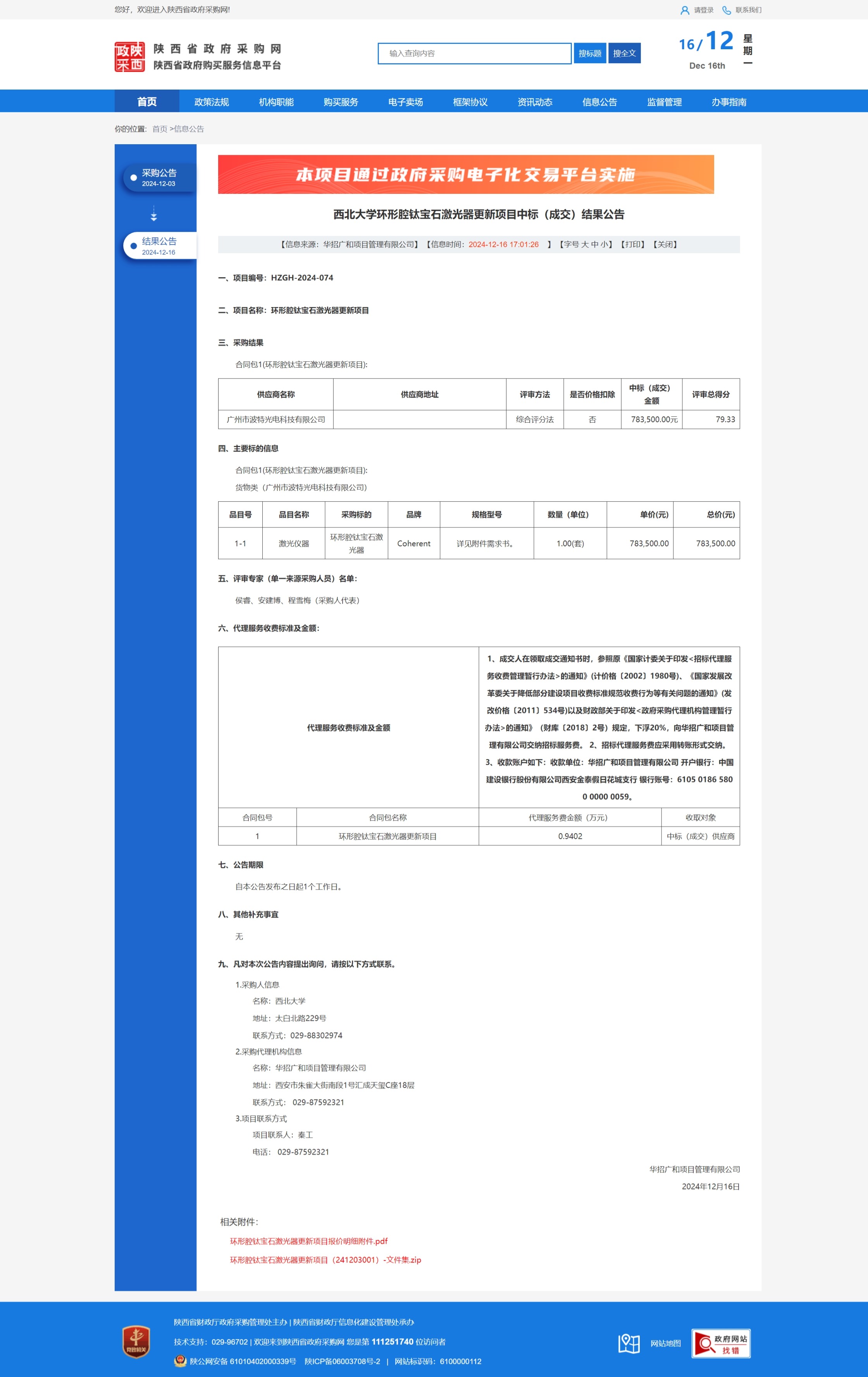 伟德国际1949始于英国环形腔钛宝石激光器更新项目中标(成交)结果公告 作者: 编辑:薛利娟 时间:2024-12-16 原公告链接:https://www.ccgp-shaanxi.gov.cn/freecms/site/shaanxi/ggxx/info/2024/8a69c5a59218576d0193ce0287994ccc.html?noticeType=001026¬iceId=f55ffa4f-bb8d-11ef-8063-08c0eb20c666