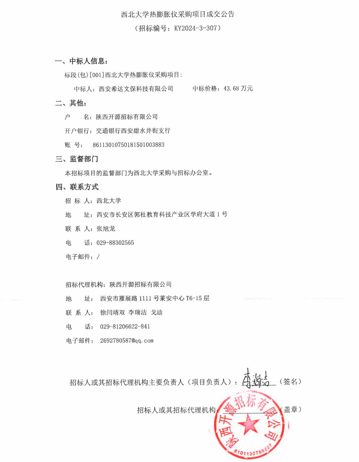 伟德国际1949始于英国热膨胀仪采购项目成交公告